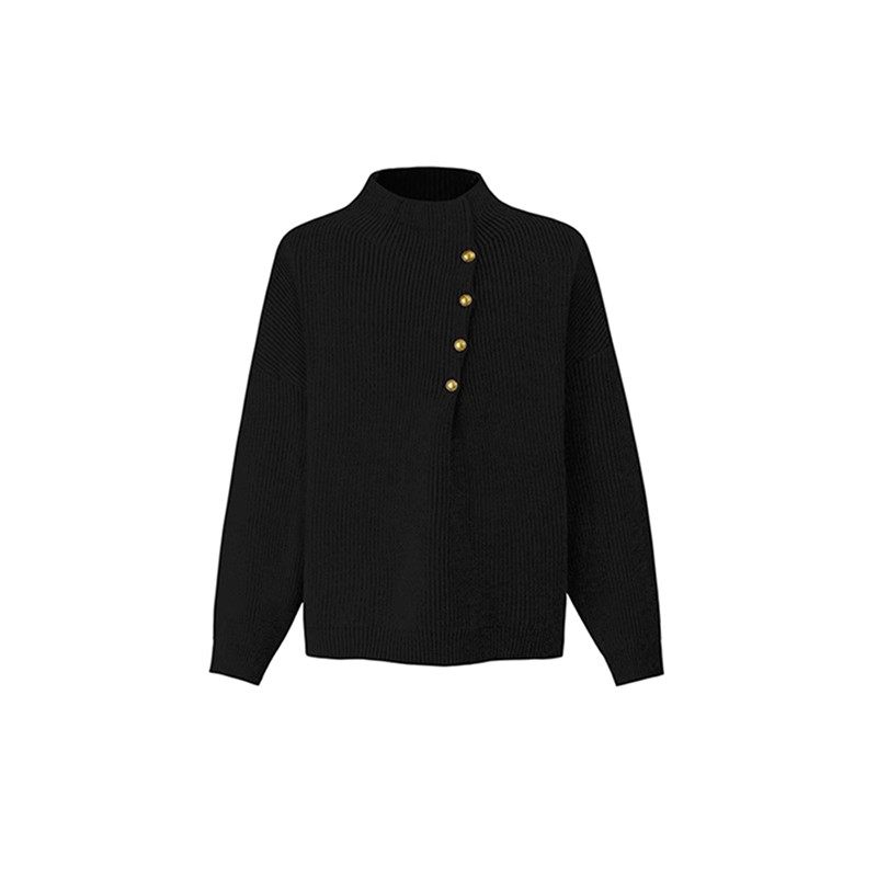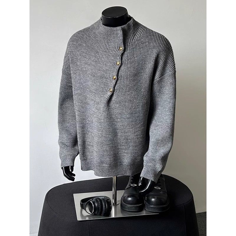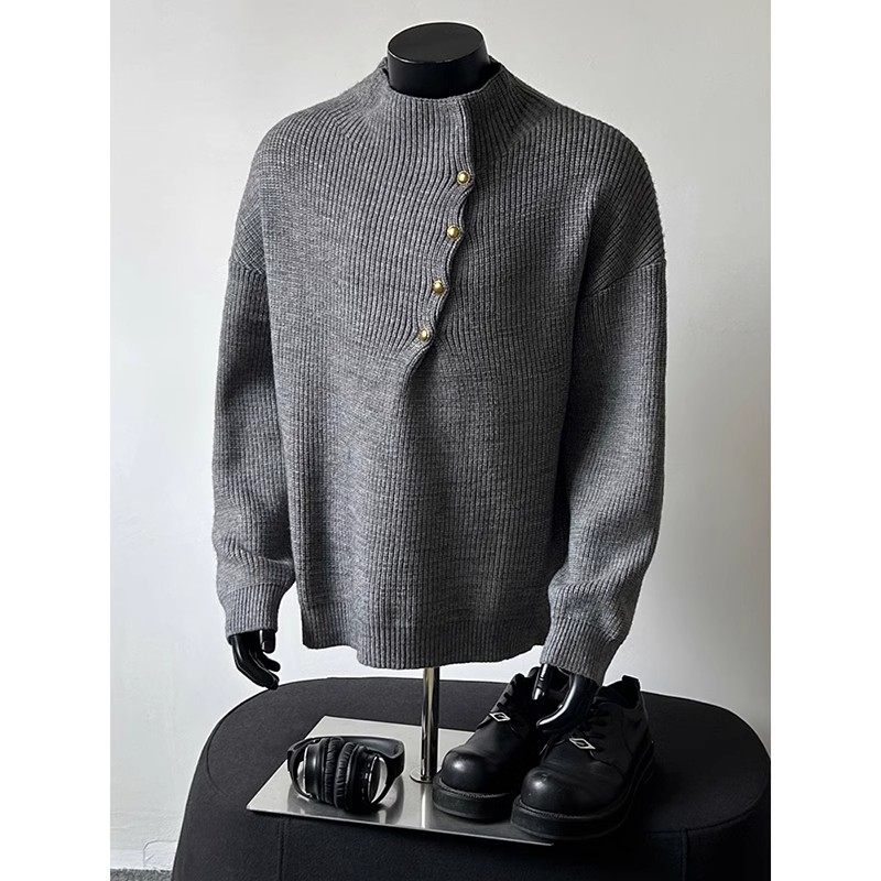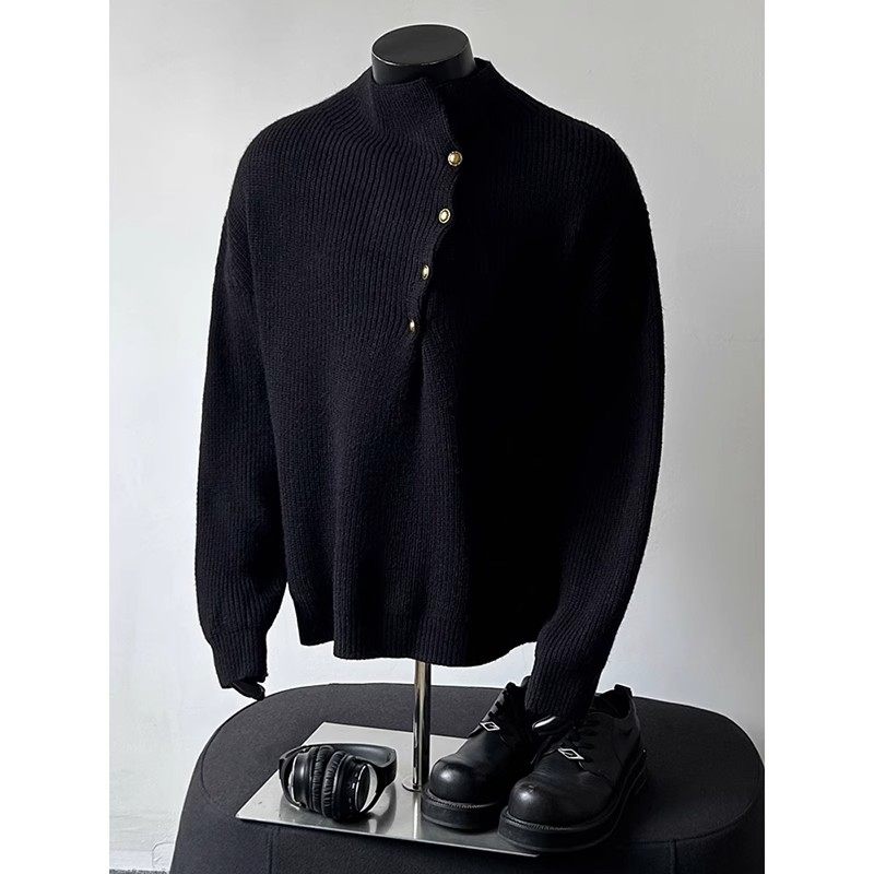黑色半高领纽扣毛衣男款冬季慵懒风铜扣高级感针织衫cleanfit外套