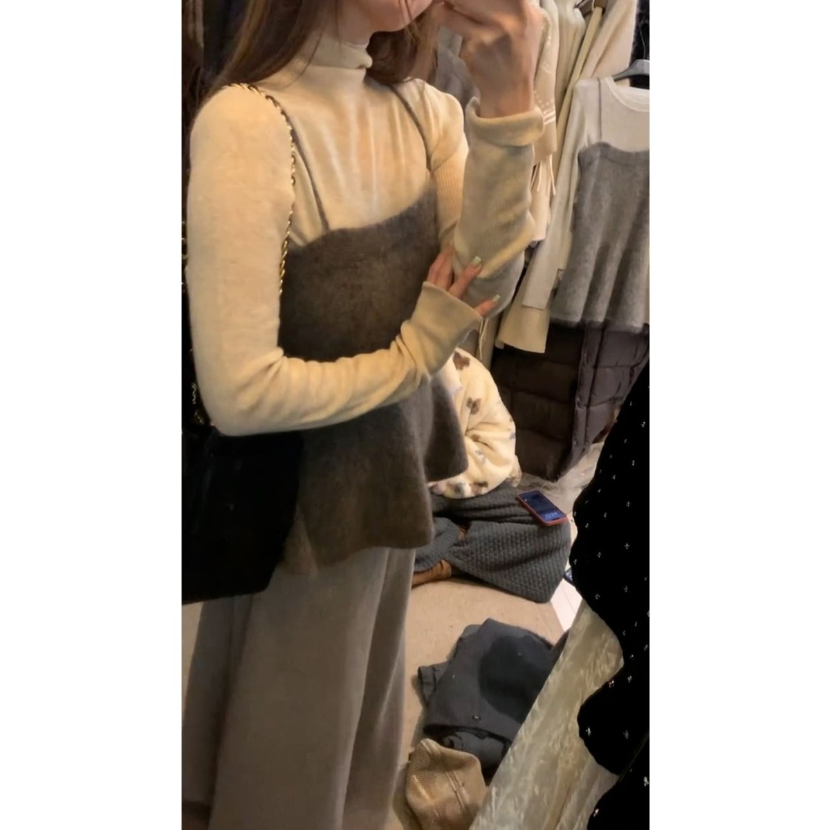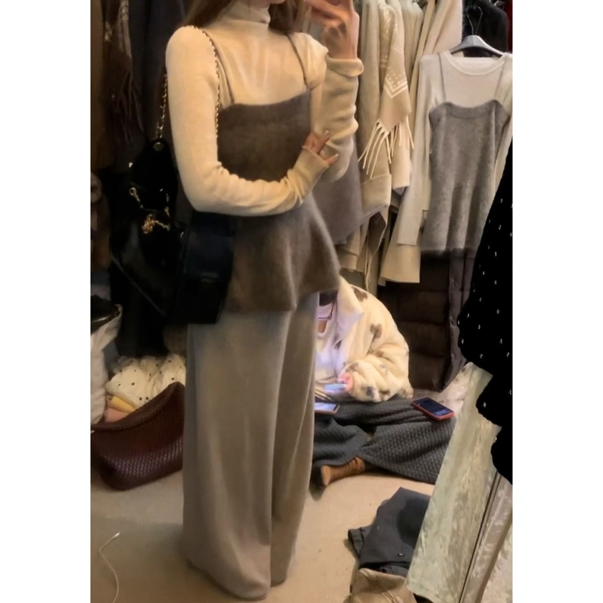 法式吊带针织连衣裙子女秋冬季2026新巨好看穿搭一整套装长裙