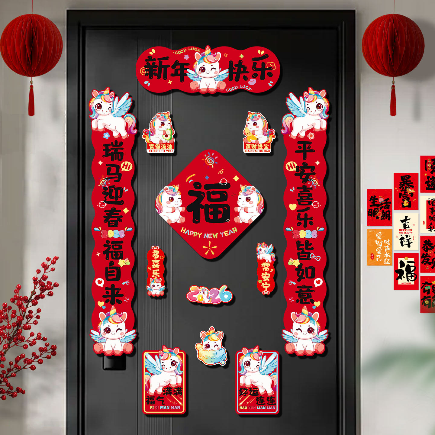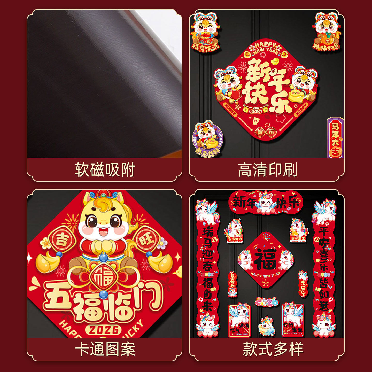 磁吸创意小对联马年2026新款过年春节入户门贴装饰春联装饰福字贴