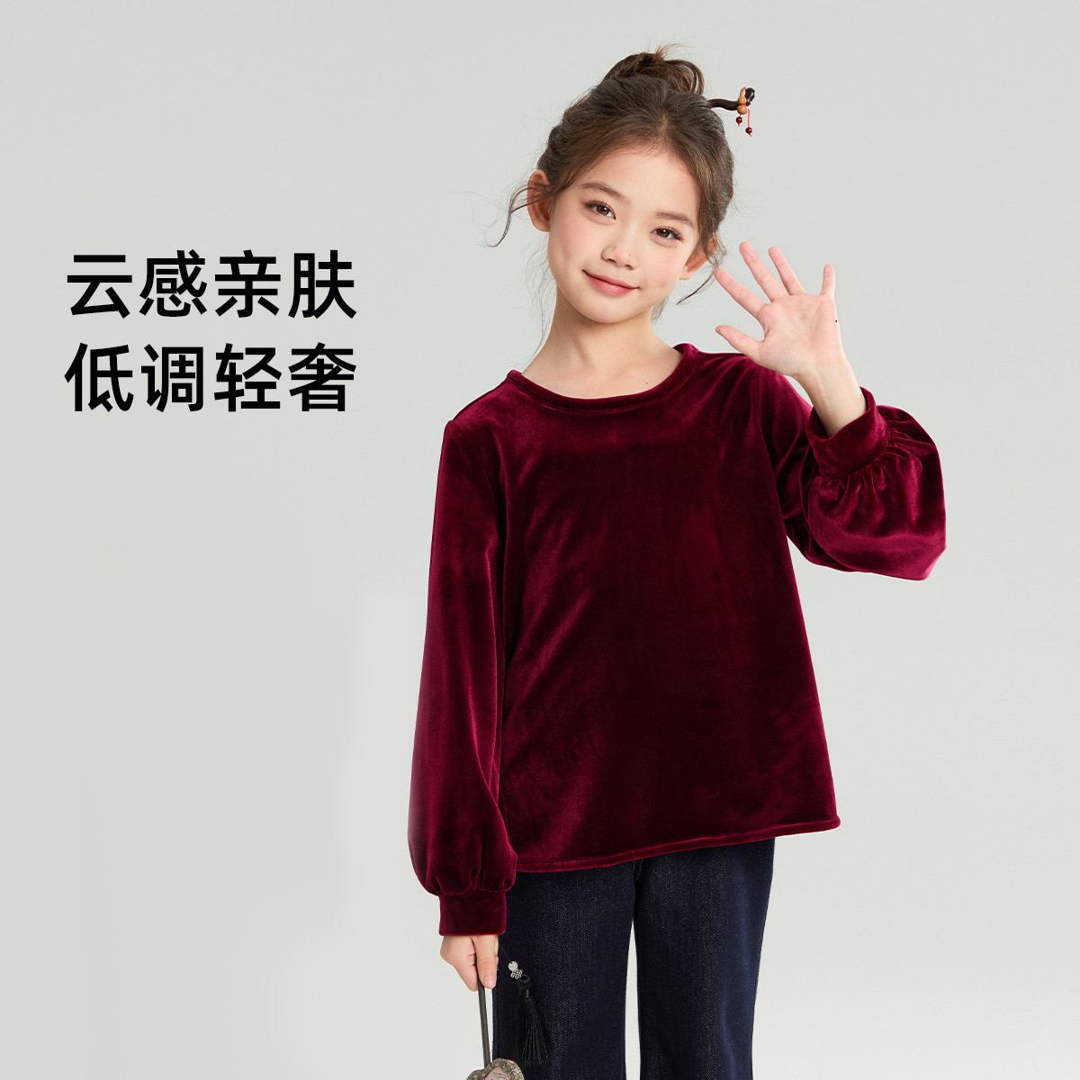 布丁哈鲁冬装女童童装上衣2026秋冬季新款儿童阳光绒长袖T恤