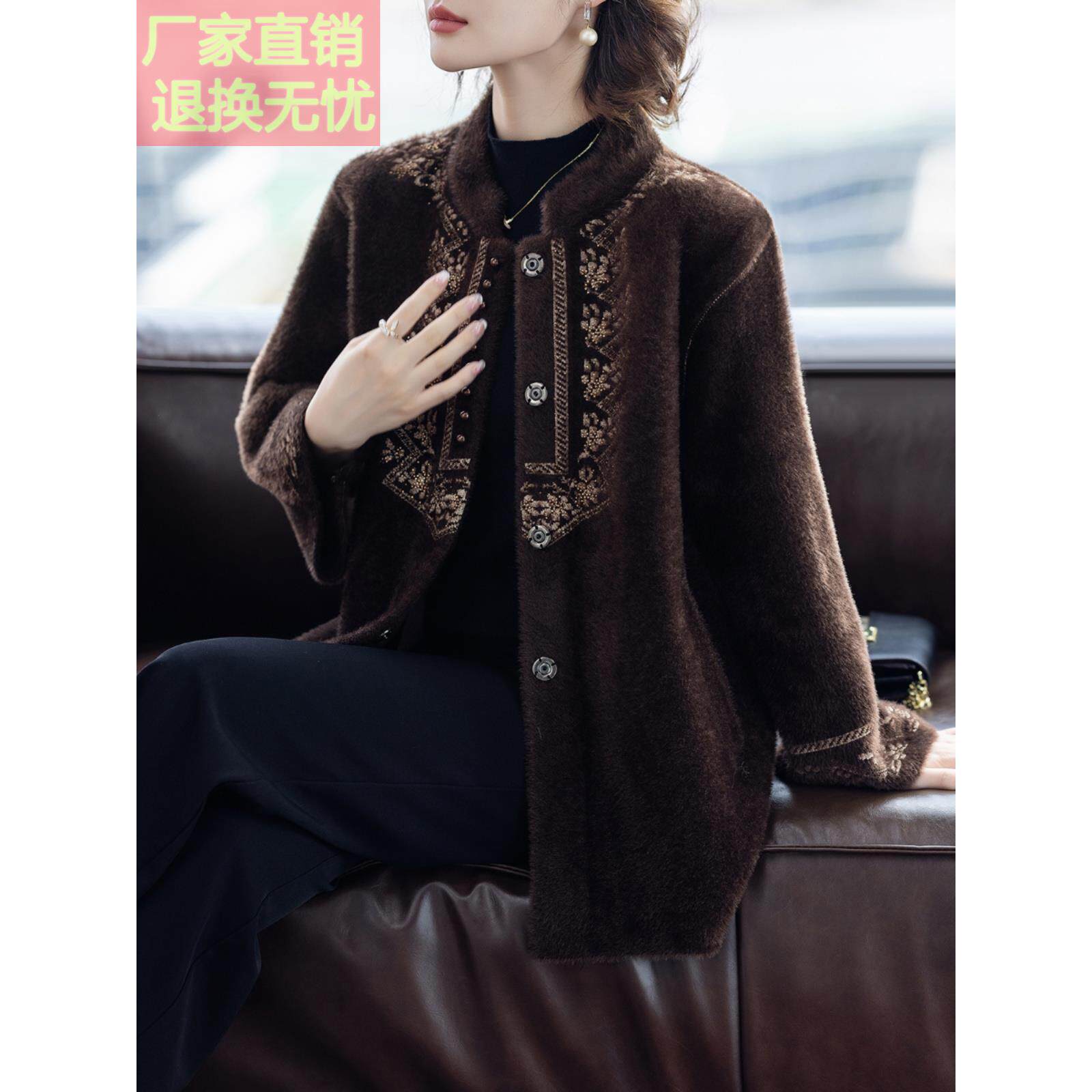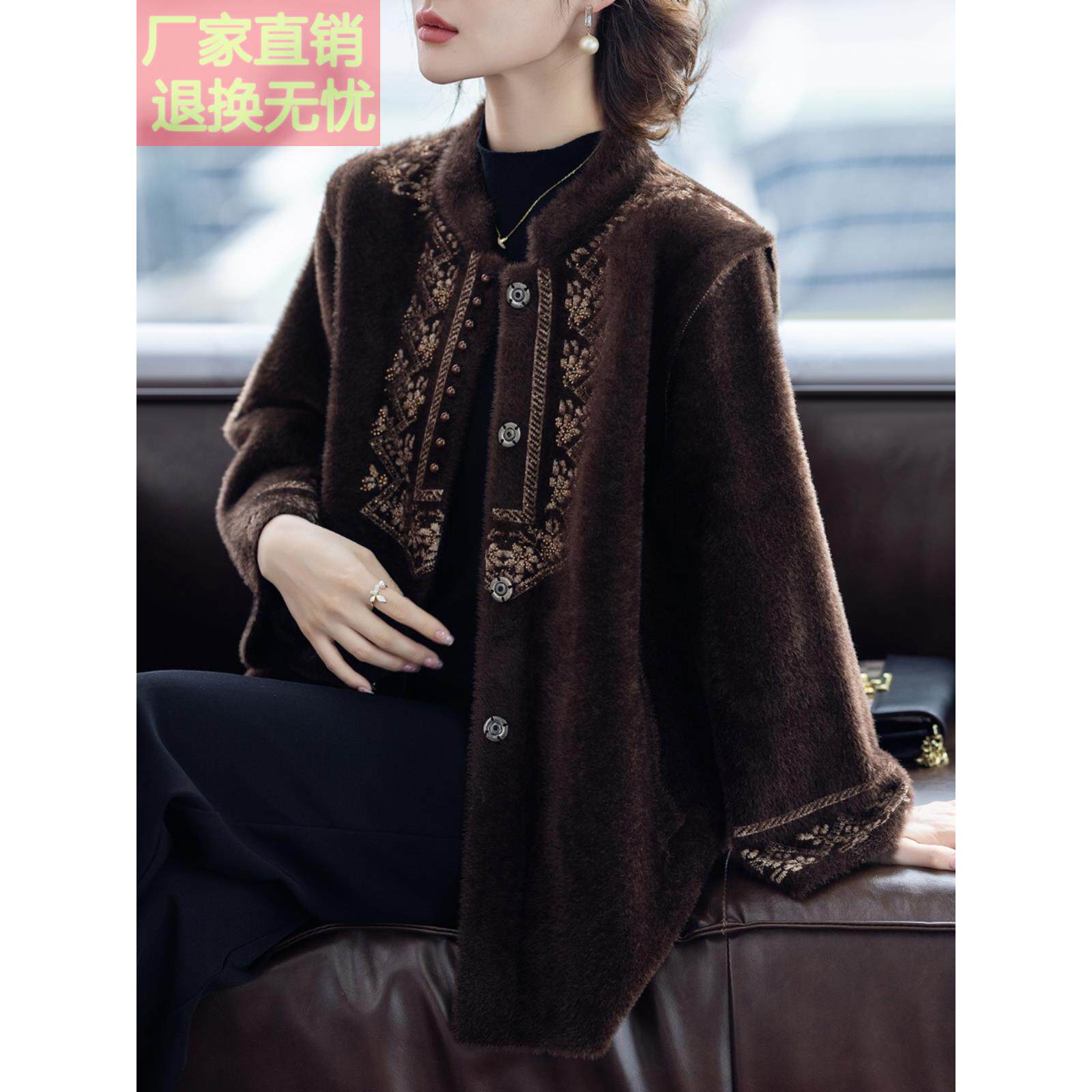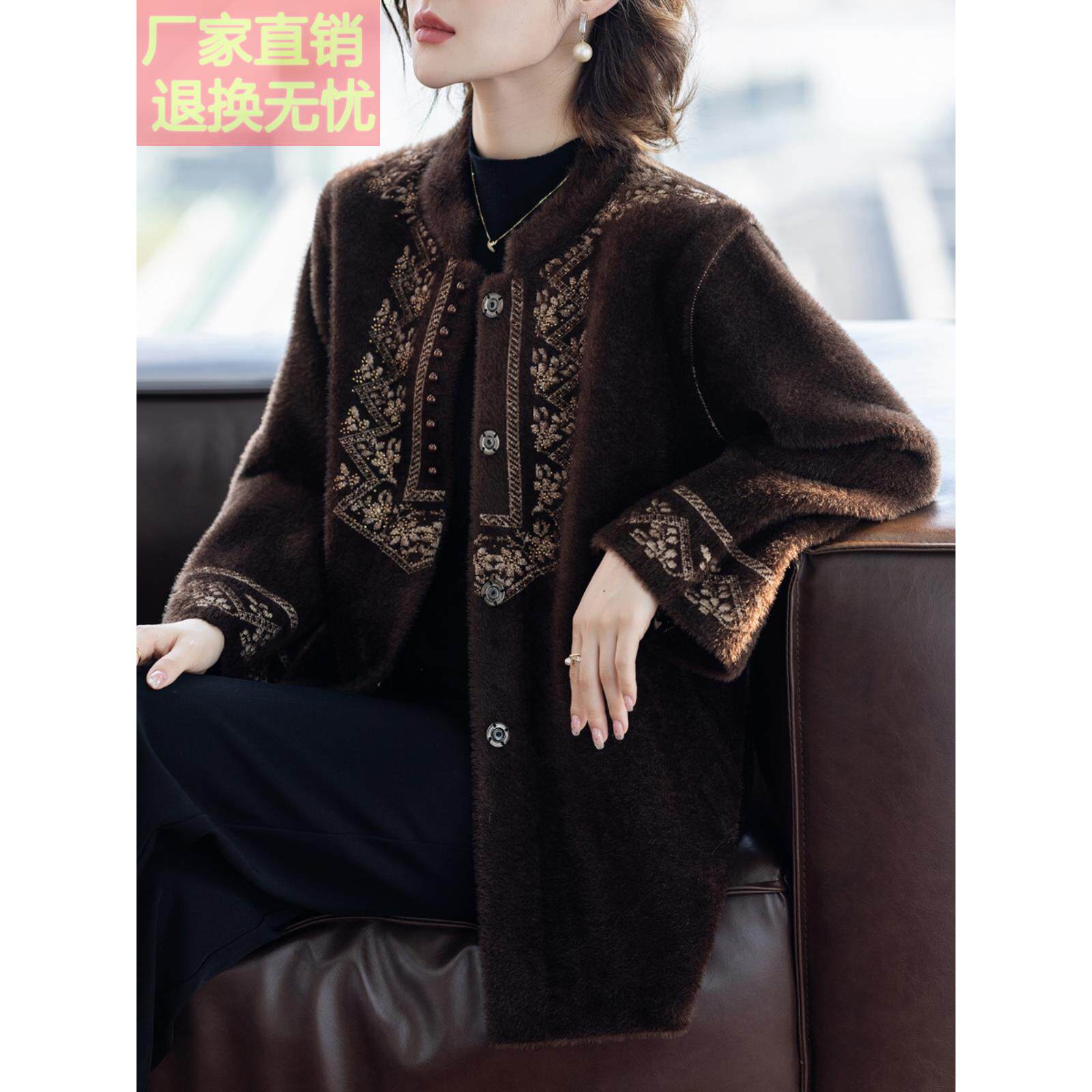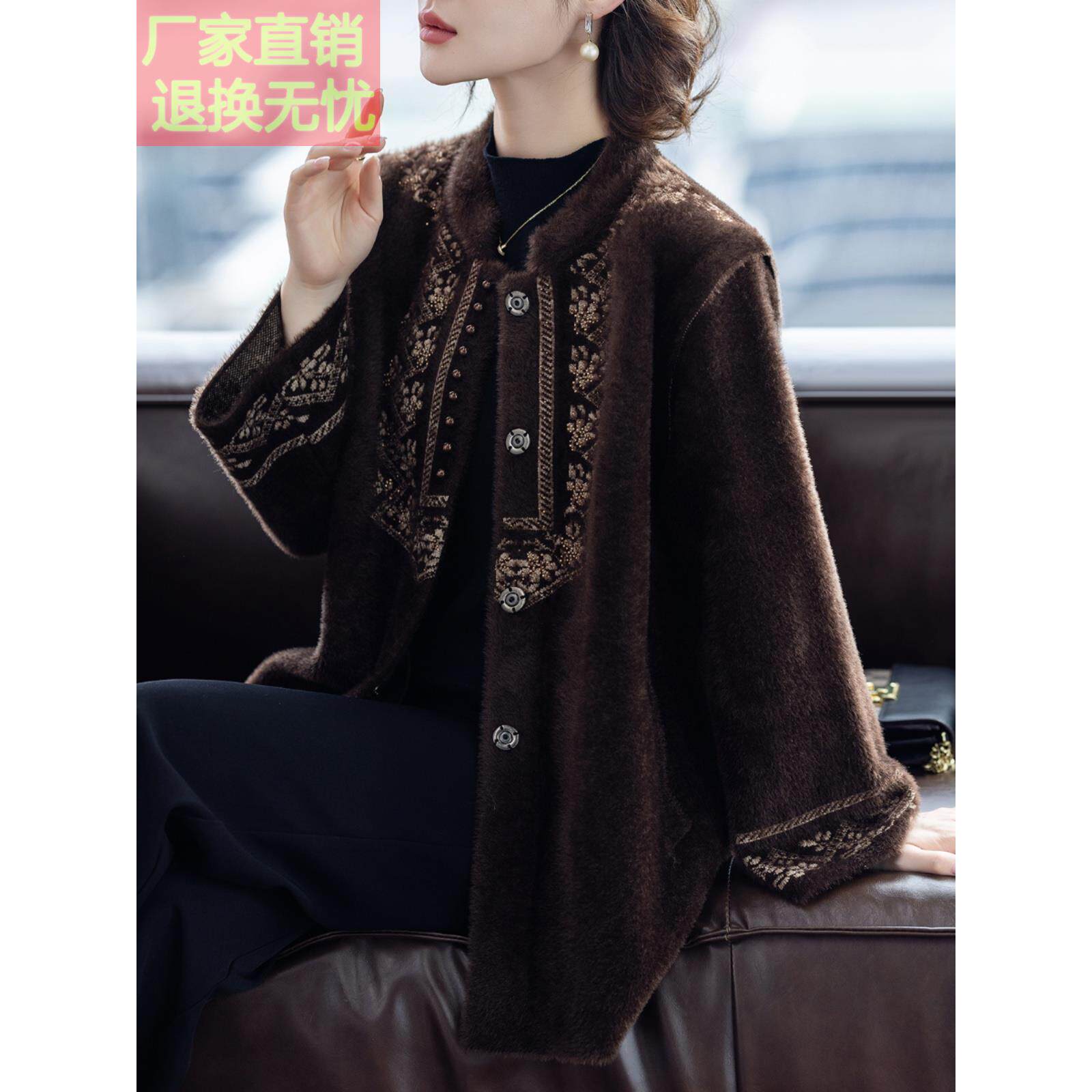 妈妈冬装外套貂绒大衣50多岁中老年人女士上衣服洋气2025新款春秋