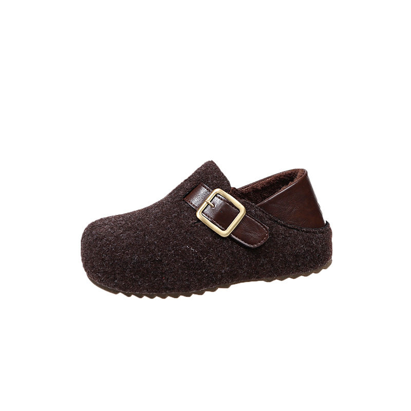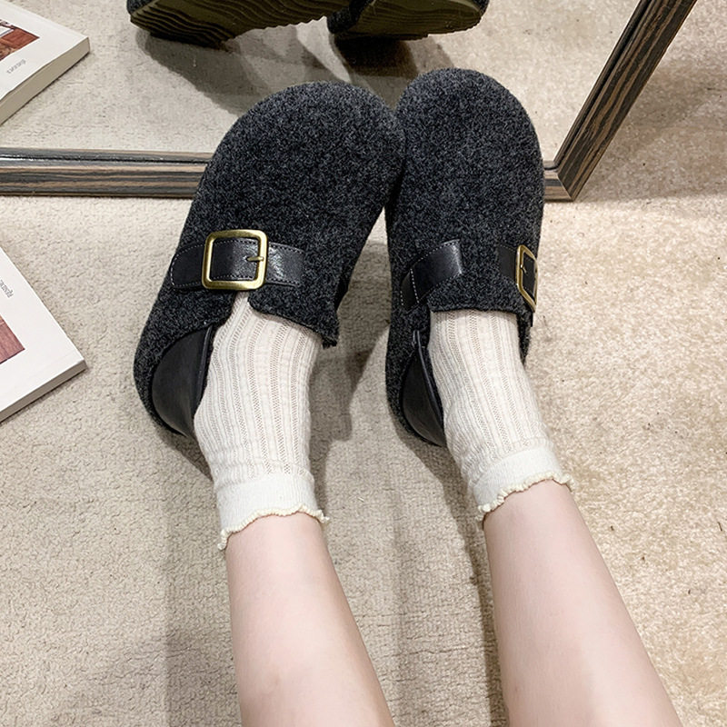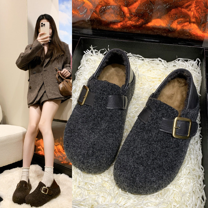 复古内增高两穿勃肯鞋女2025新款秋冬毛呢懒人一脚蹬厚底加绒棉鞋