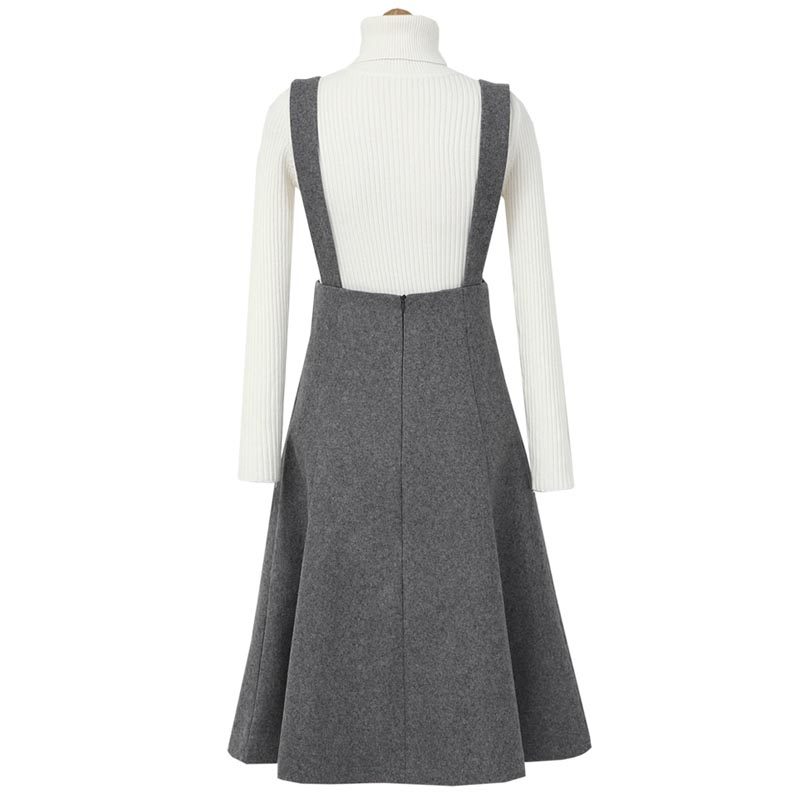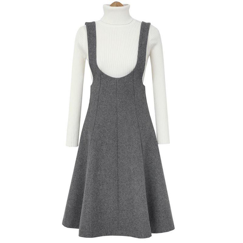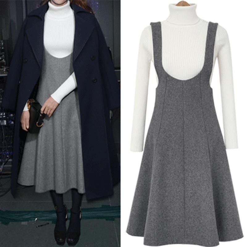 秋冬毛呢连衣裙子大码女装显瘦背带a字大摆裙子中长款外穿打底裙