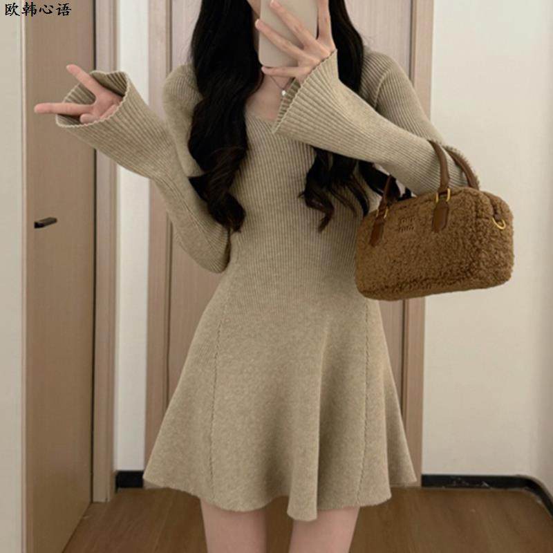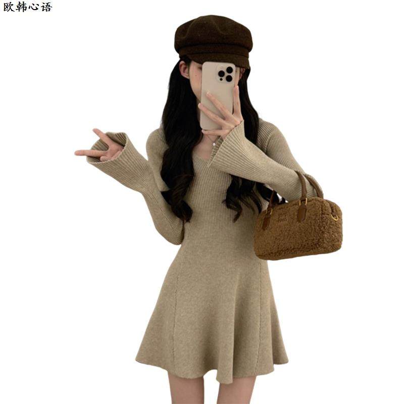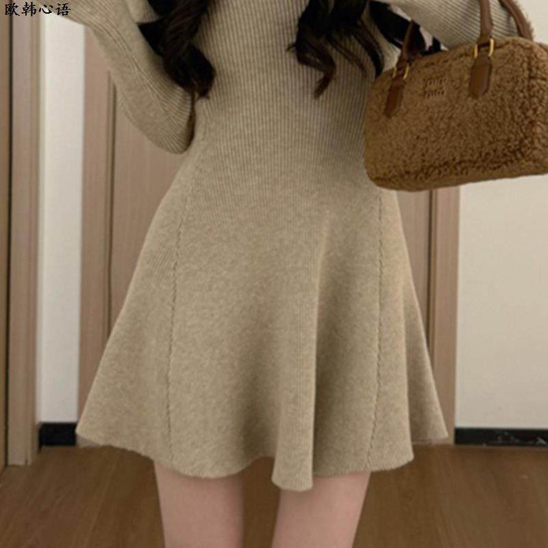 法式高级感气质长袖针织连衣裙子女秋冬季2024新款小个子收腰短裙