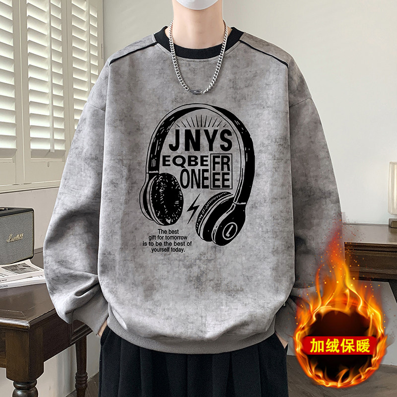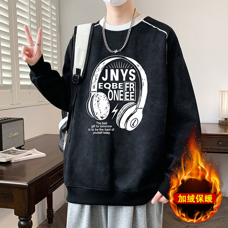 圆领秋冬长袖潮流帅气新款男孩学生加绒初中青少年卫衣打底上衣
