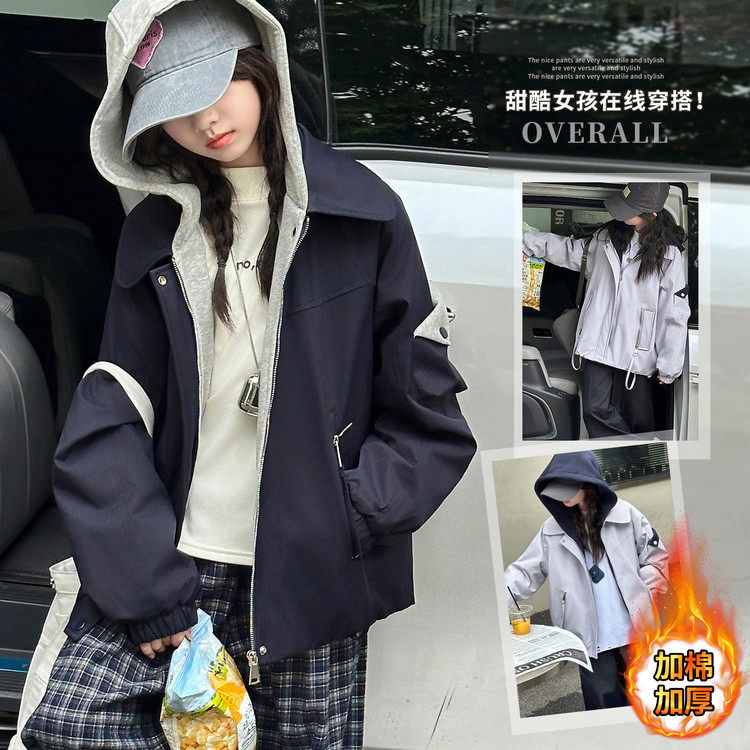 女童夹棉加厚棉衣外套2025秋冬装中大童洋气时髦初中生冲锋衣棉服