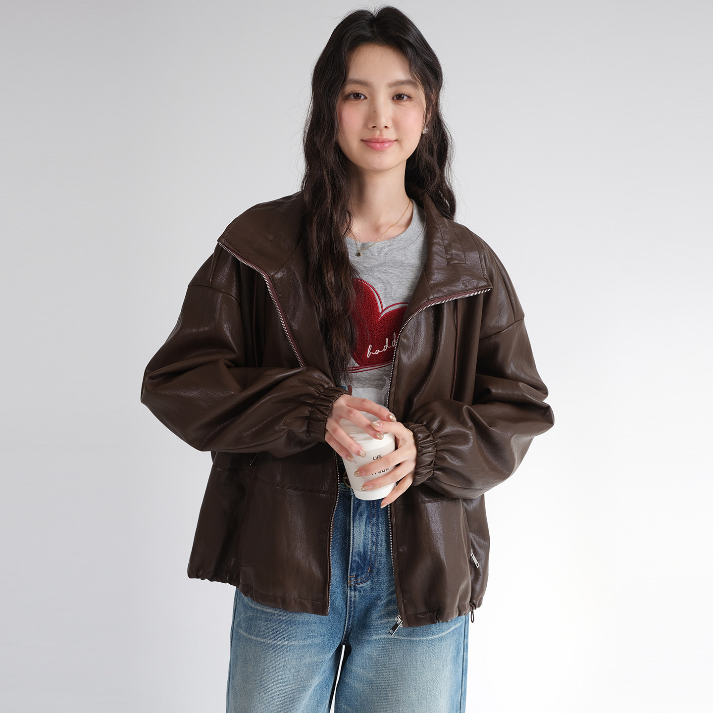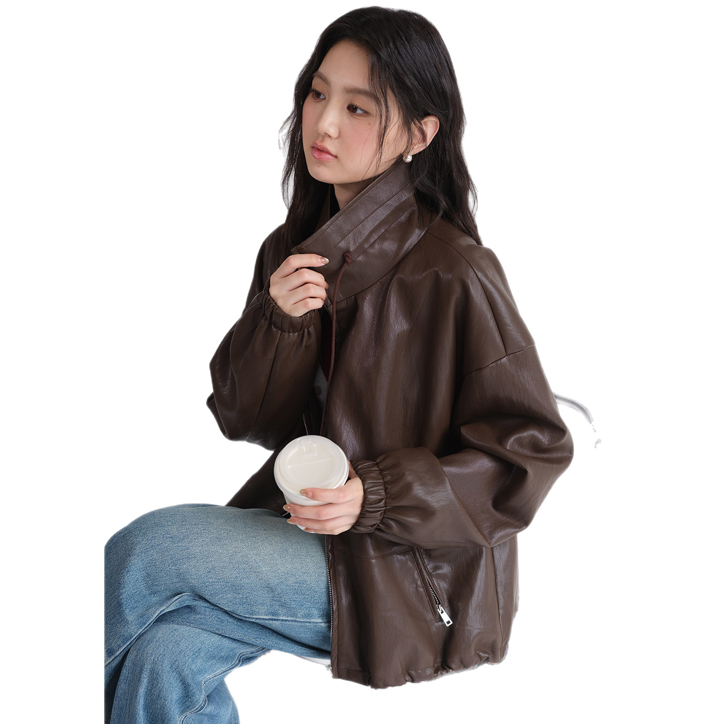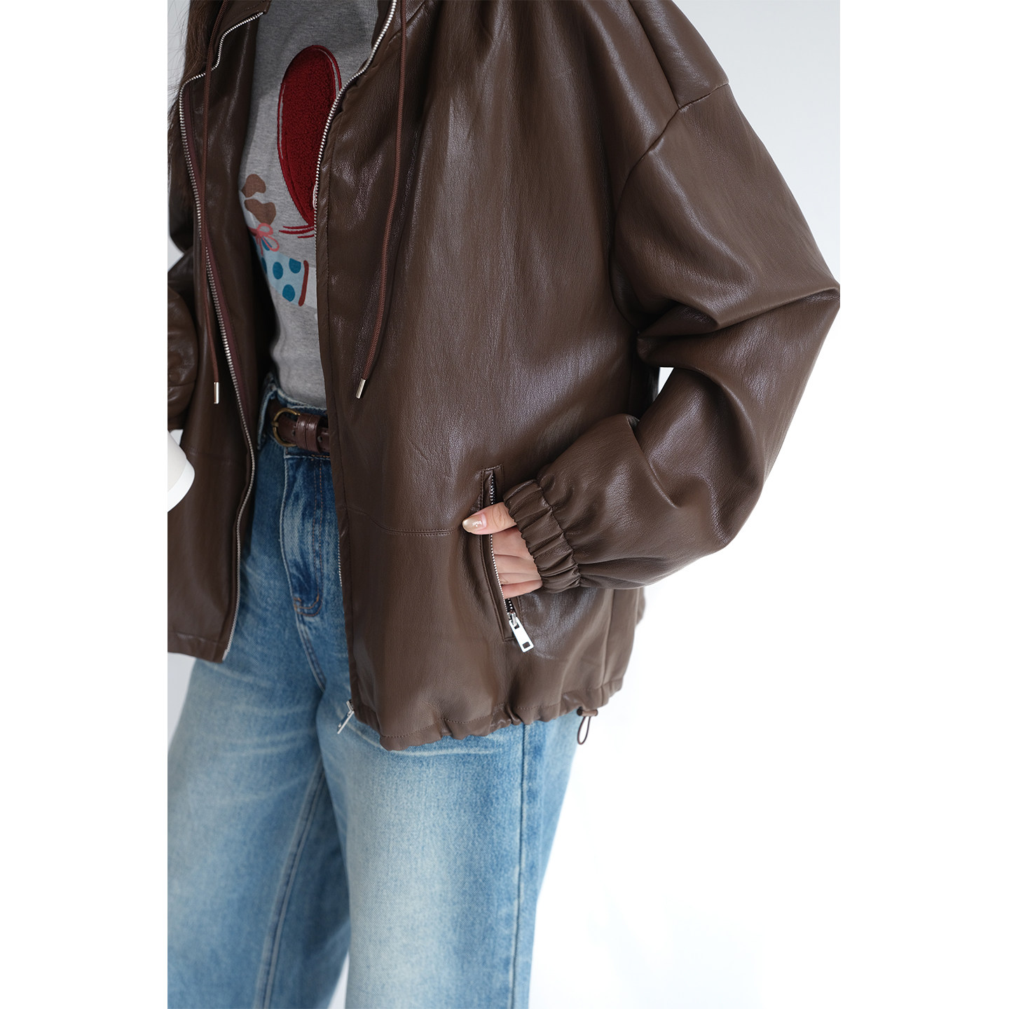 311线报网描述:炸街立领PU皮衣外套设计感小众机车夹克上衣