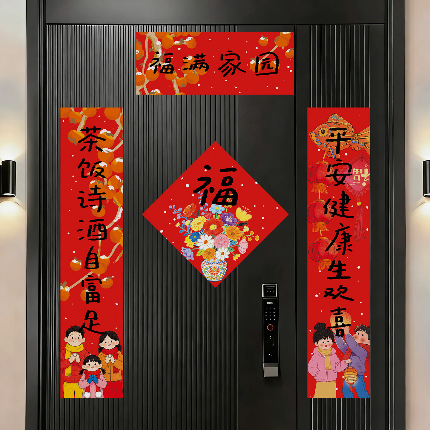2026新款插画磁吸对联创意春联马年新年乔迁之喜房间入户大门贴纸
