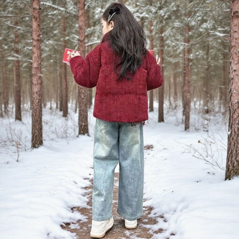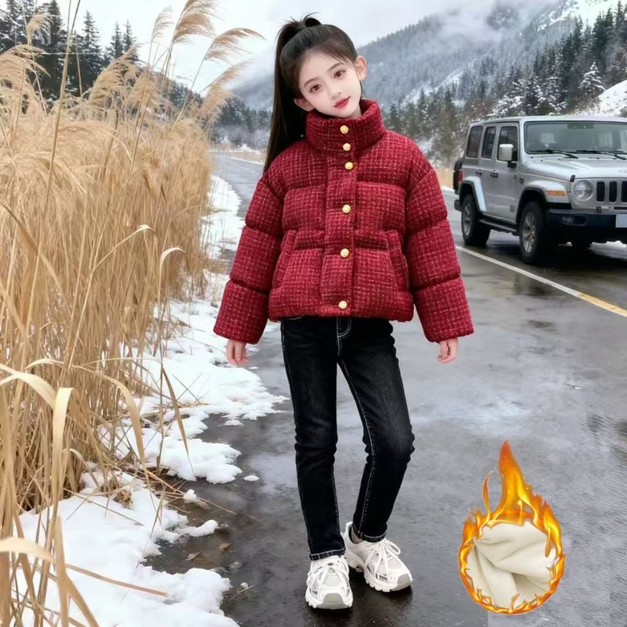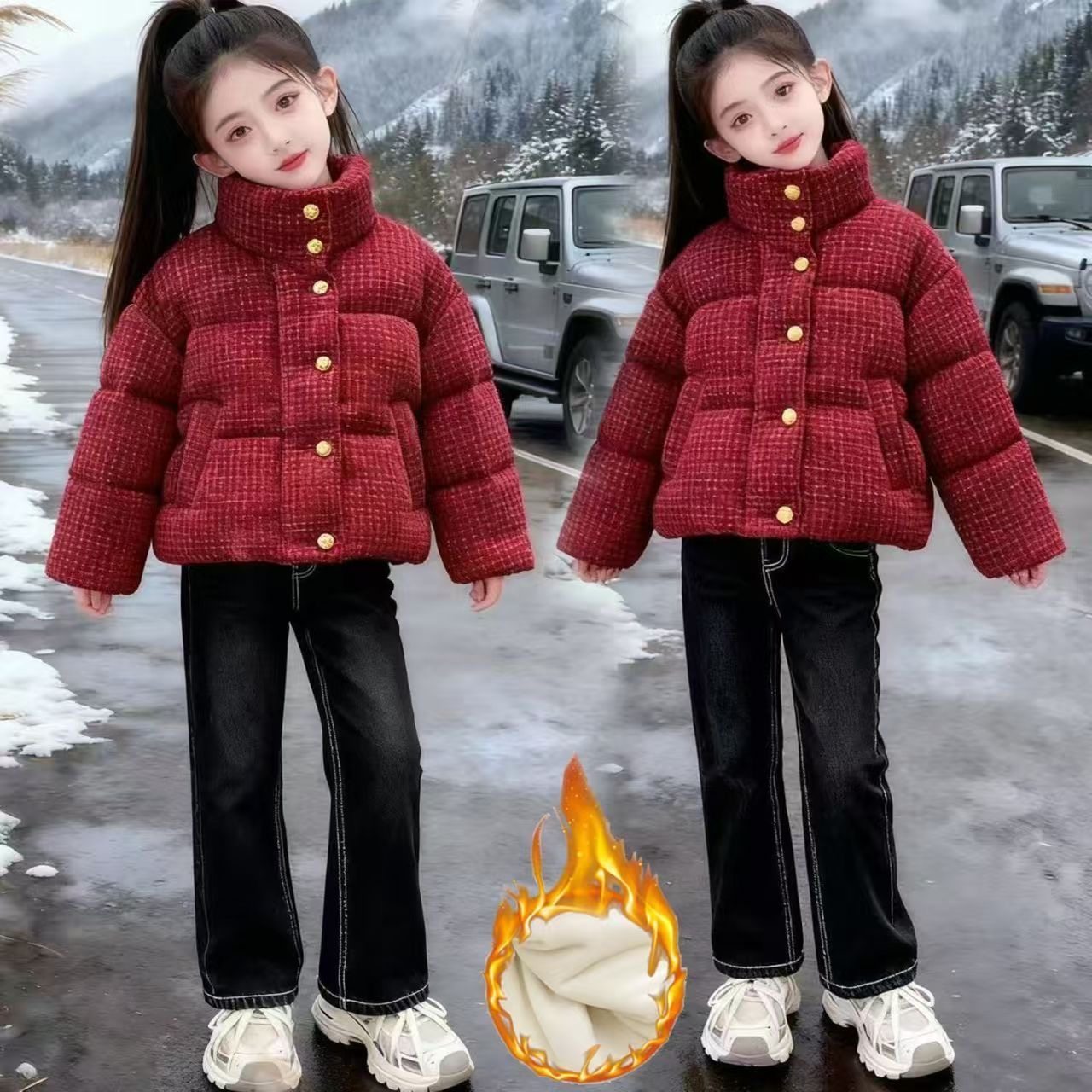 女童棉衣拜年服时髦洋气中大童高级红色过年衣服韩版冬装棉服棉袄