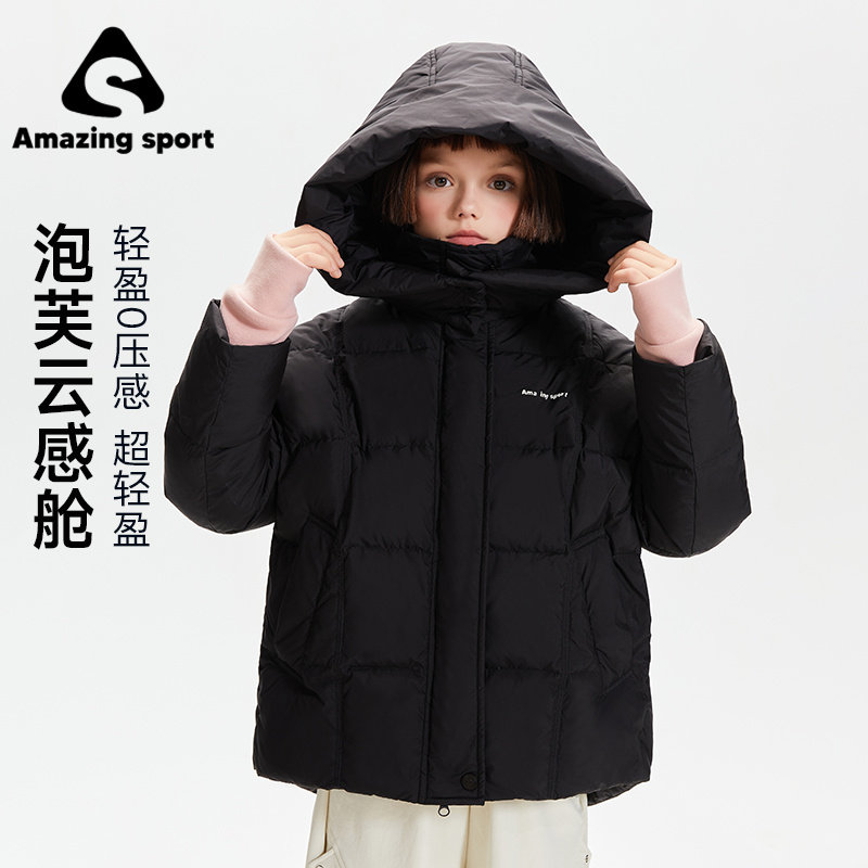 奇动童装【雪花泡芙】女童冬羽绒服2026新款儿童中长款加厚鹅绒服