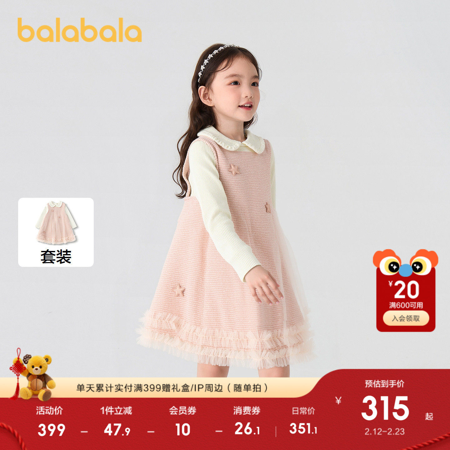 【商场同款】巴拉巴拉女童连衣裙套装小香风2025新秋冬两件套甜美