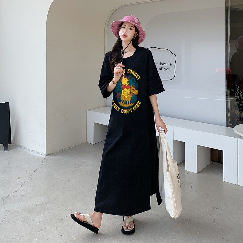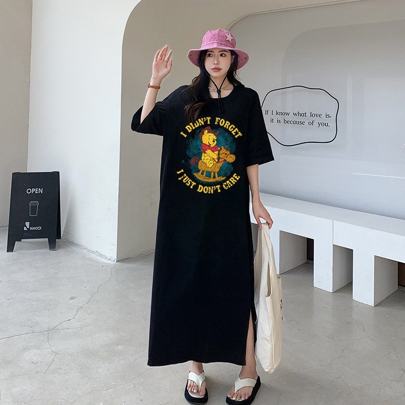 高个子大码遮肚子显瘦连衣裙胖mm夏装宽松纯棉过膝长款及踝t恤裙