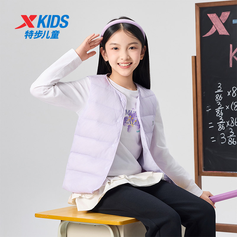 特步童装儿童羽绒马甲女童轻薄背心2026年秋冬新款大童防寒服外穿