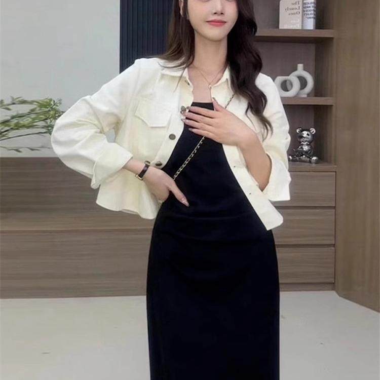 法式白色针织长袖连衣裙女冬季大衣羽绒服内搭打底毛衣长裙小个子