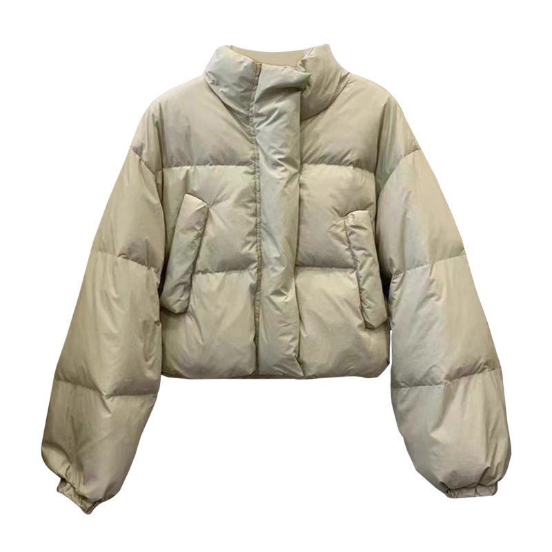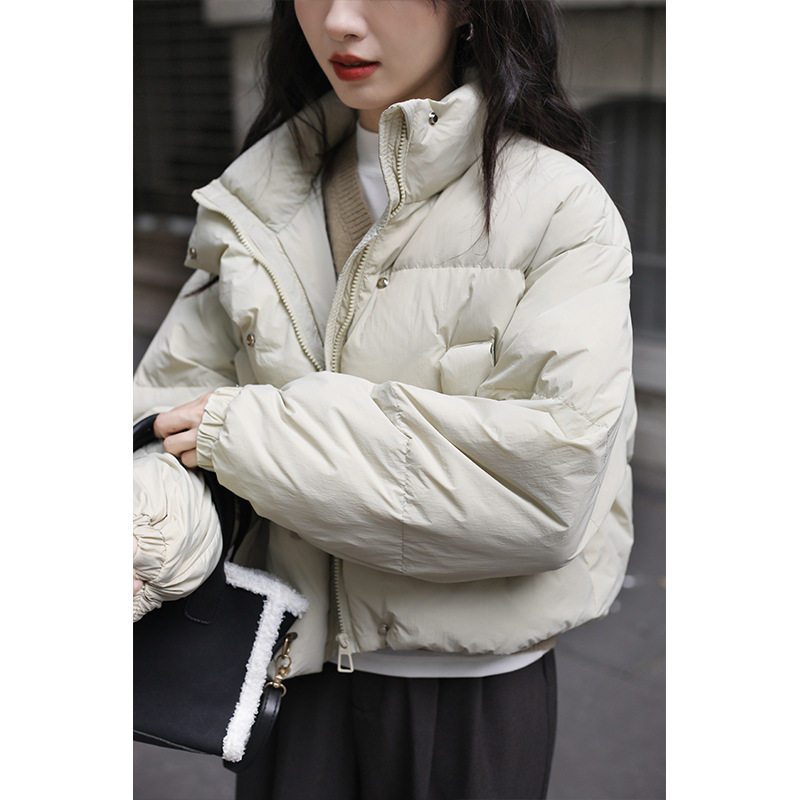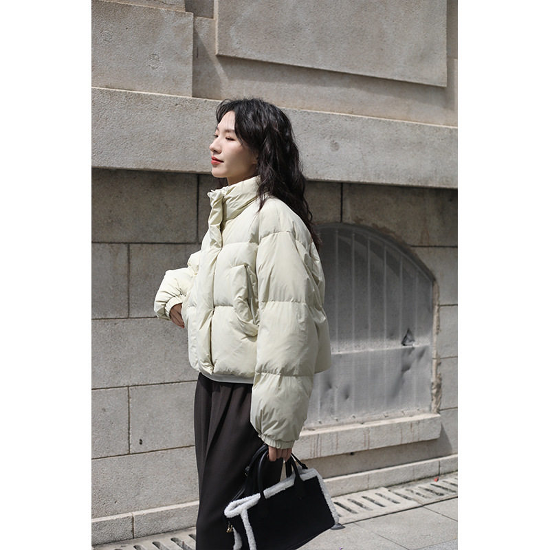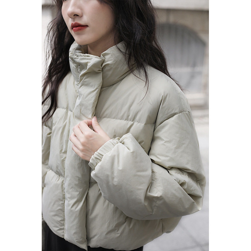 浅绿色短款羽绒服女2025年新款白鸭绒面包服冬季立领小个子外套