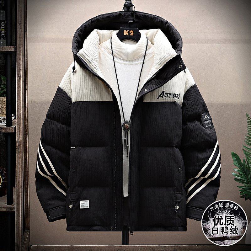 情侣羽绒服冬季短款连帽白鸭绒外套男生青少年冬装加厚保暖防寒服