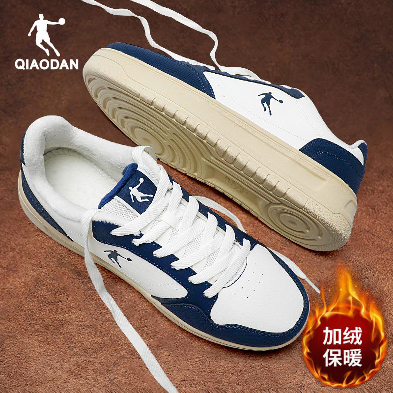 乔丹男鞋黑色加绒板鞋2025冬季新款官方正品青少年运动休闲鞋子男