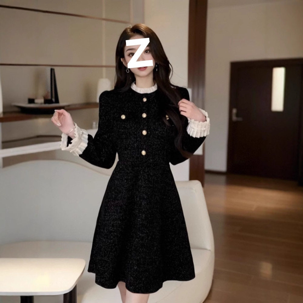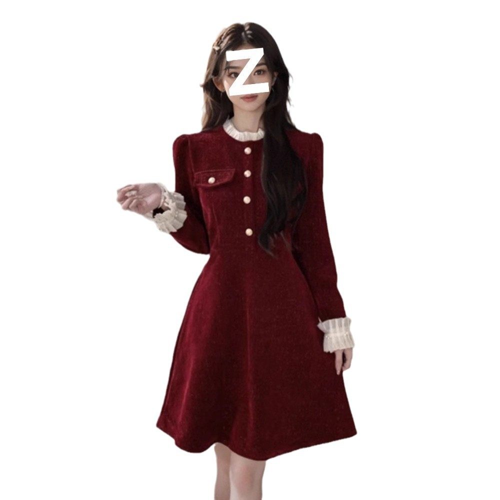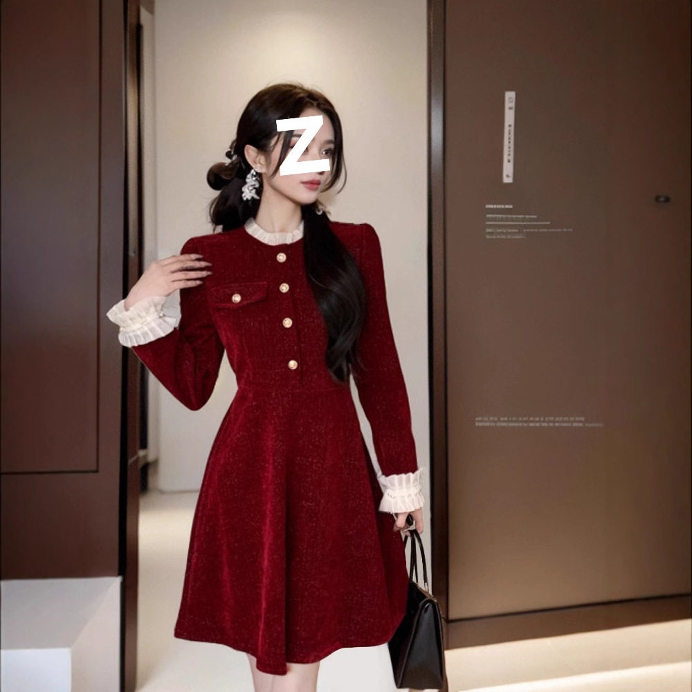 过年战袍新年红色小香风连衣裙女秋冬小个子年会小礼服轻奢高级感