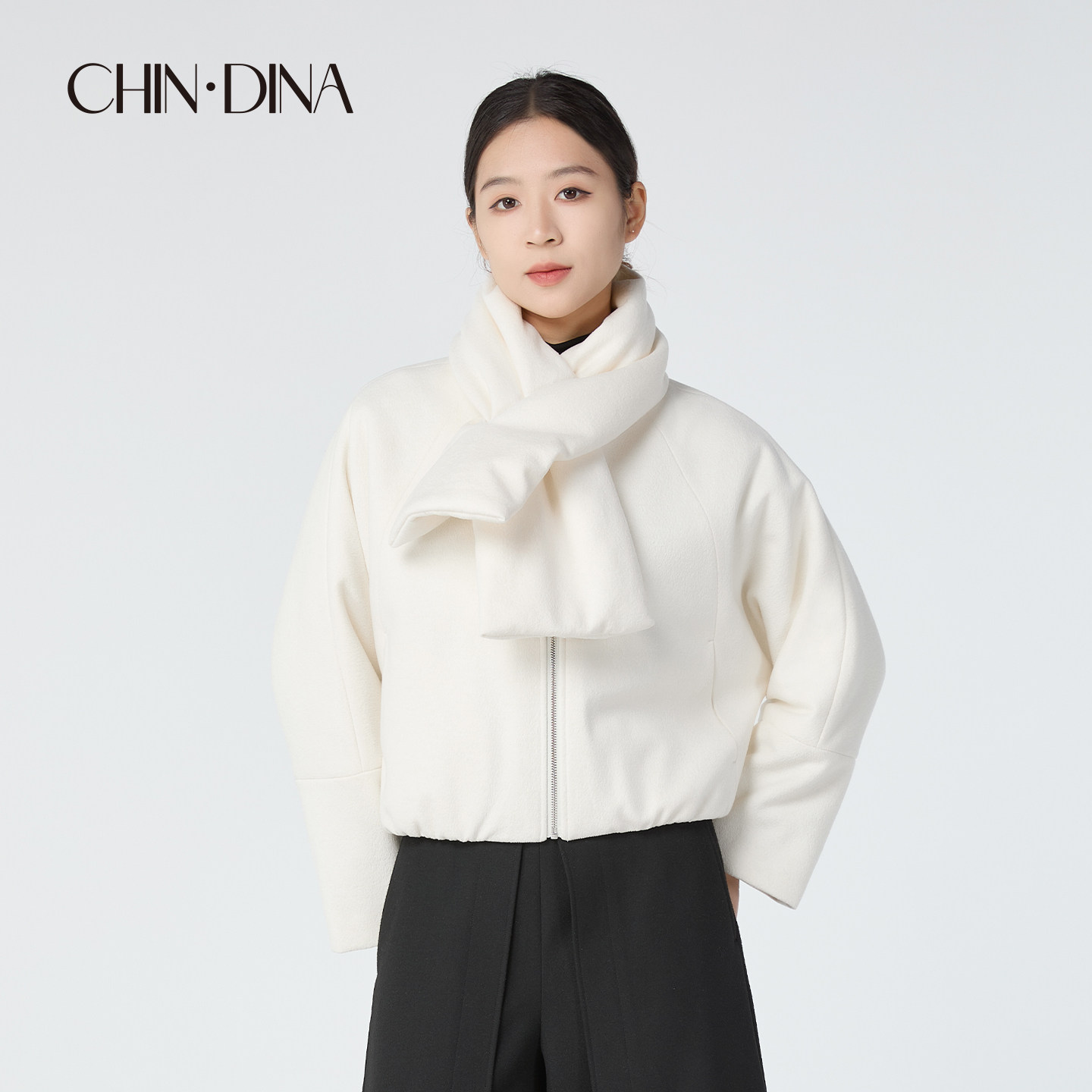 新中式短款V领棉服女款2025新款冬季小个子显高围巾保暖短外套