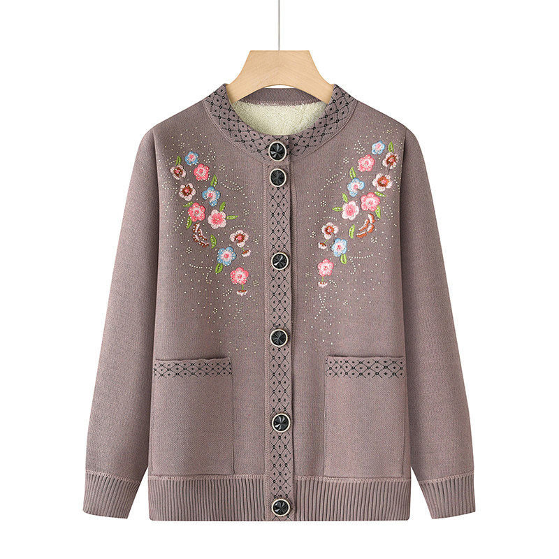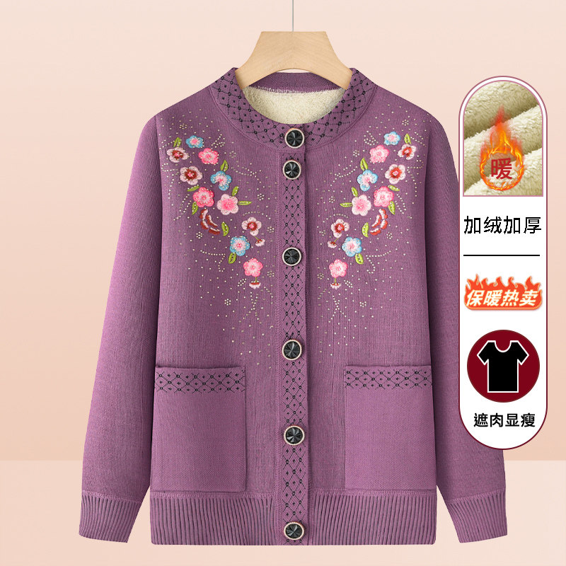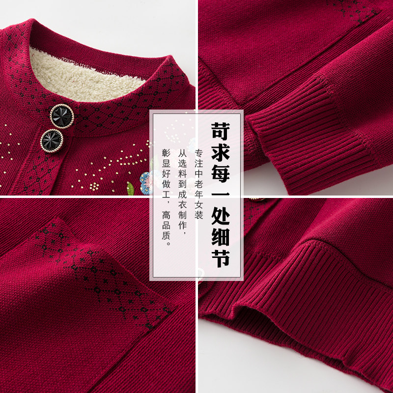 中老年女装秋冬款加绒加厚外套妈妈装保暖上衣奶奶装毛衣开衫新款