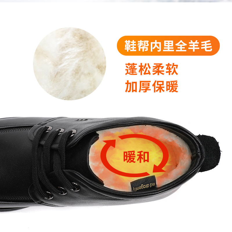311线报网描述:鞋面头层牛皮 内里加绒保暖 高帮防滑
