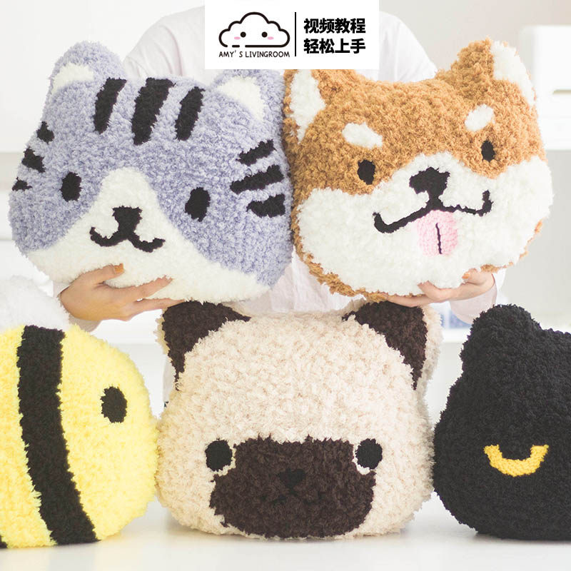 俄罗斯戳戳绣秀简单diy材料包毛线画墩绣宠物猫咪抱枕diy照片定制