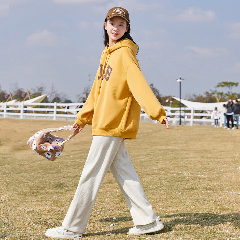 一体绒卫衣加厚初中学生套头少女孩潮流新款高中生学院风秋冬装