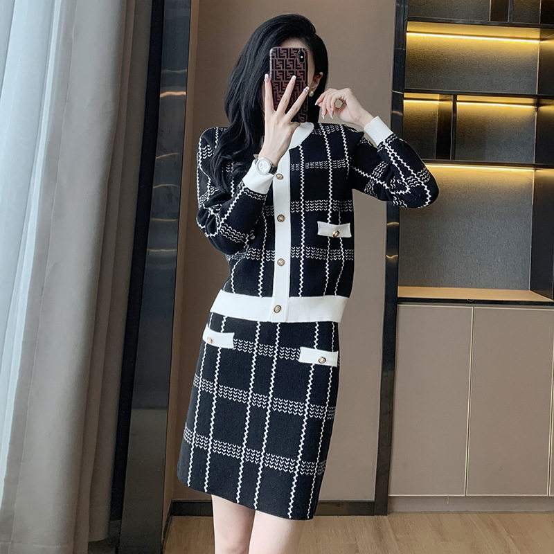 十三行女装新款小香风套装女2025秋冬装毛衣短裙针织两件套装裙子