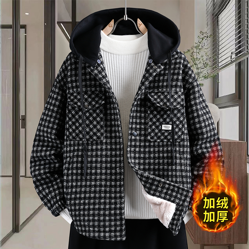 格子外套男生秋冬季新款连帽青少年初高中学生夹克上衣服男装士潮
