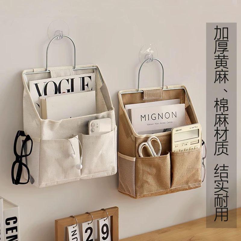 布艺棉麻床头宿舍收纳挂袋墙挂式杂物零食整理袋墙上储物袋大容量