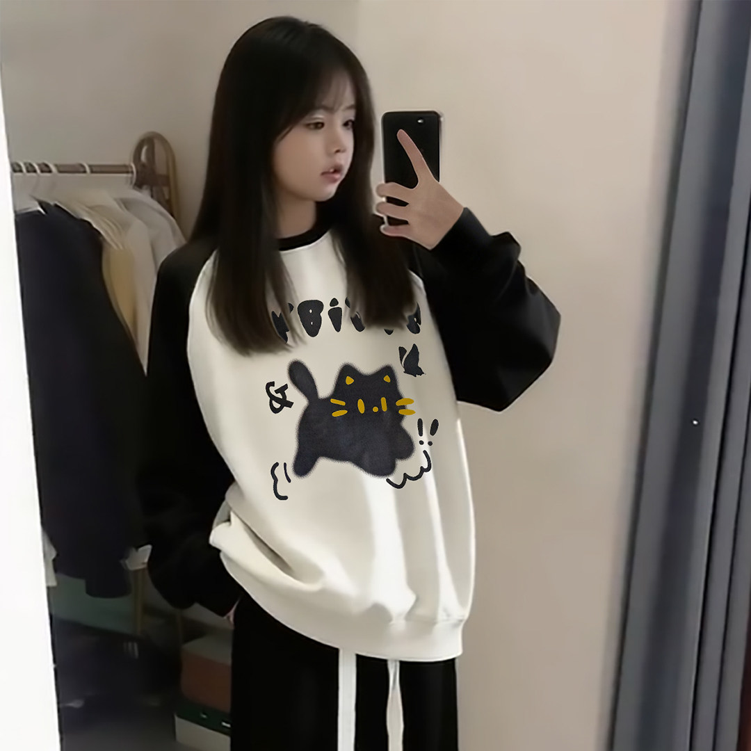 圆领外套加绒裤子女小个子ins穿搭套装初中女学生卫衣女2025新款