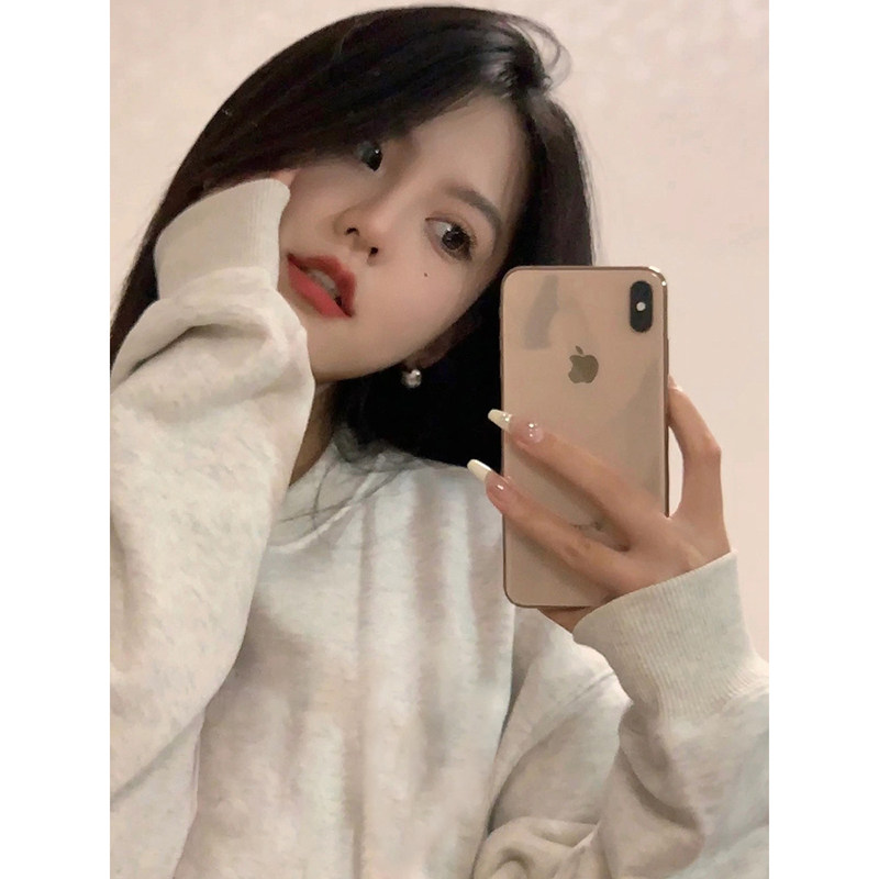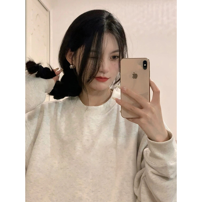灰色加绒卫衣女款2026新款无帽圆领初中生胖mm大码女装长袖上衣女