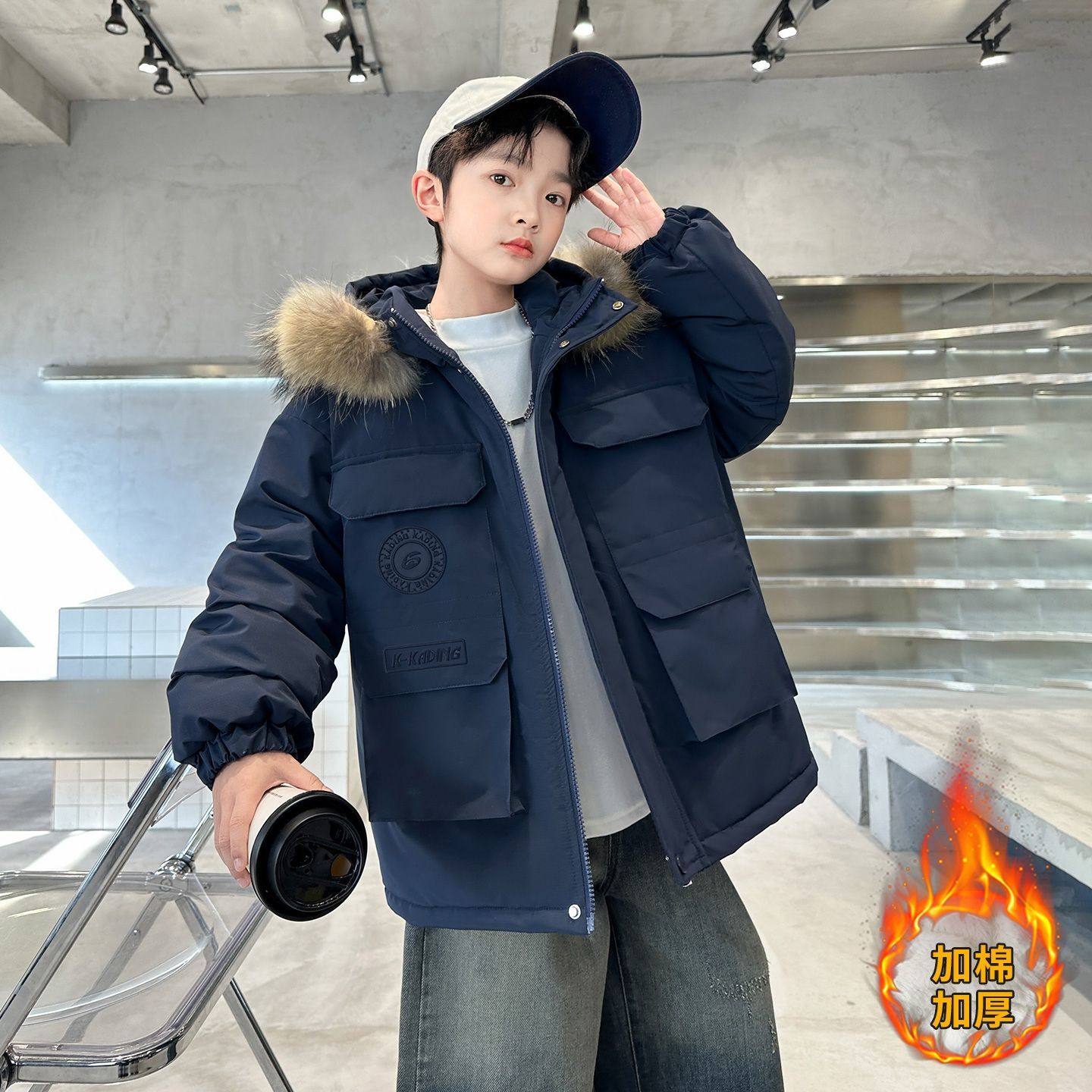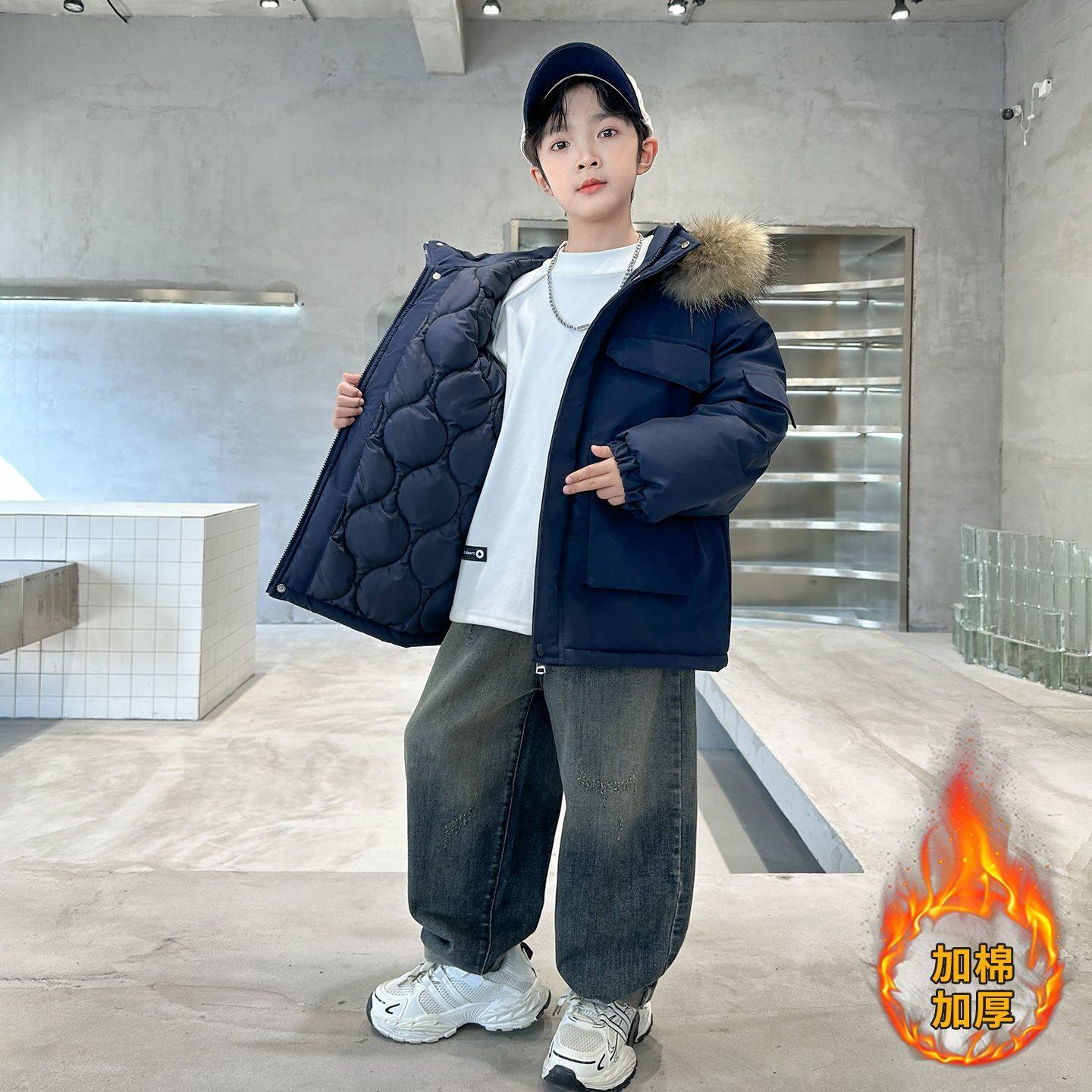男童棉服冬季2025新款儿童棉袄中大童洋气棉衣加厚男孩超好看外套
