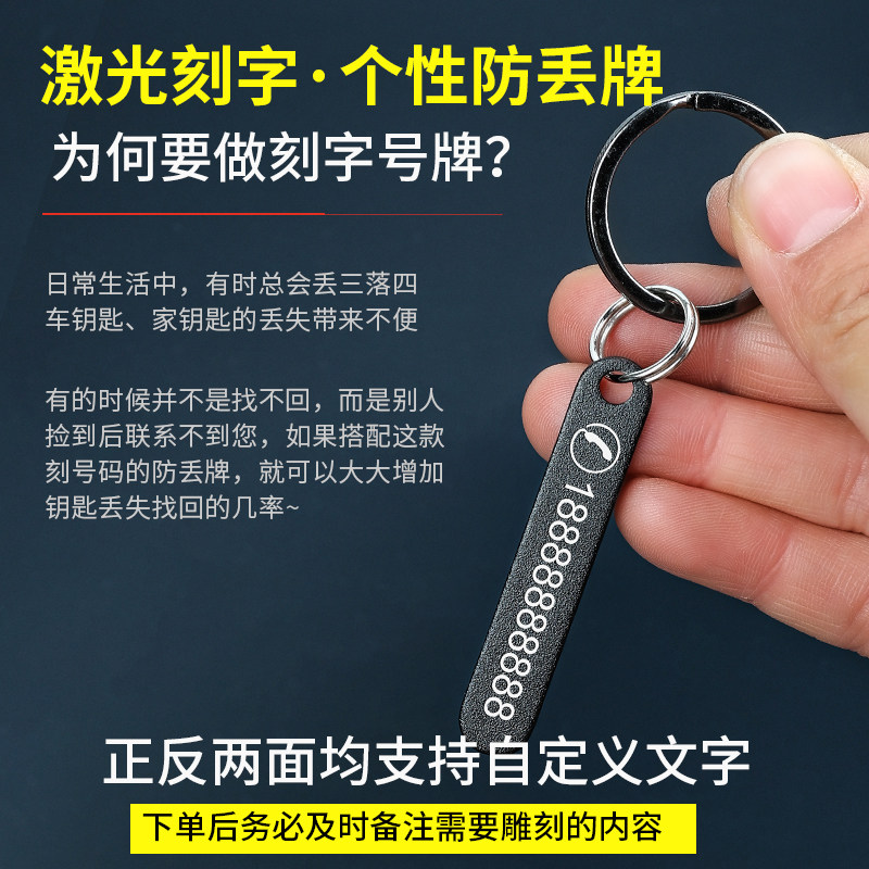 铝合金防丢号码牌定制刻字钥匙扣电话手机男士女环链汽车挂件挂饰