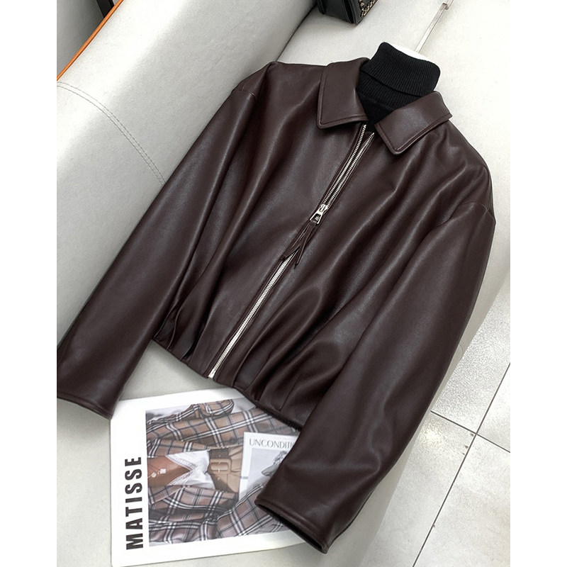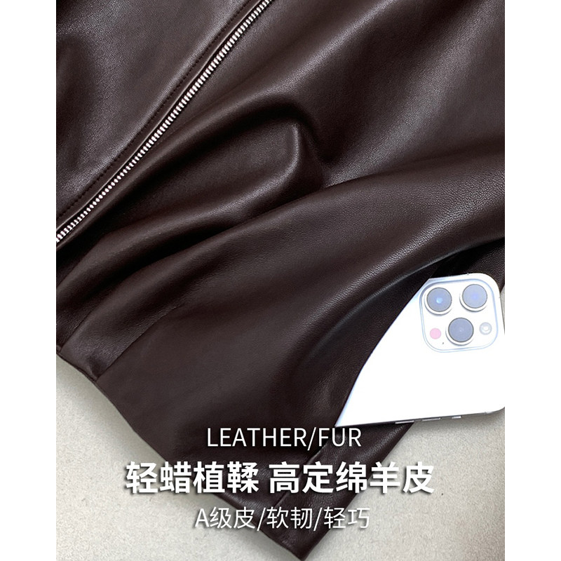 轻蜡植鞣绵羊皮真皮皮衣女短款外套宽松明星款皮夹克2025B1913