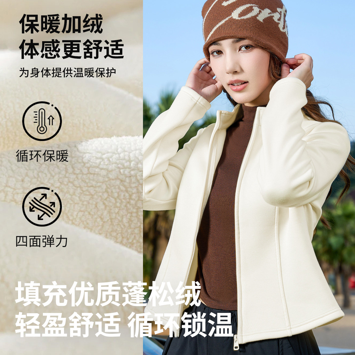 JEEP吉普加绒卫衣女款2026新款黑色立领开衫独特漂亮冬装厚外套Y
