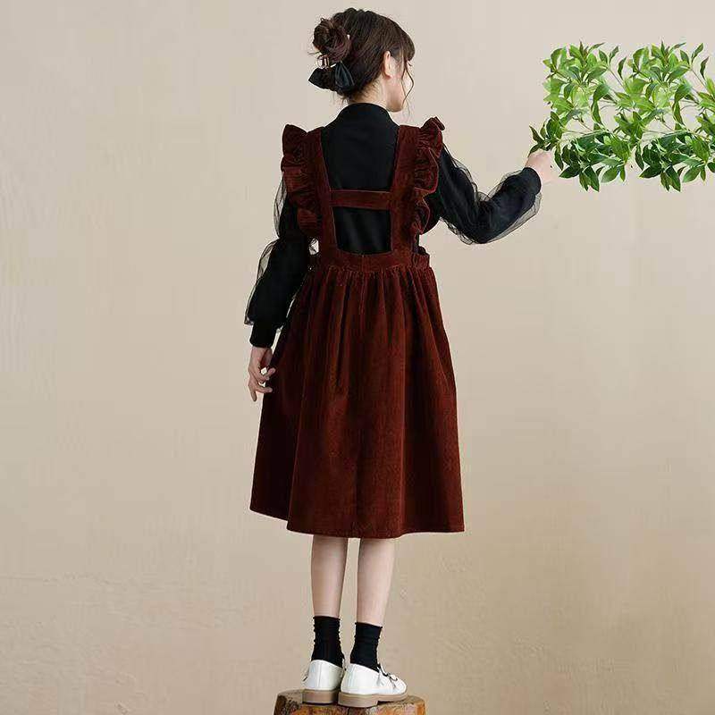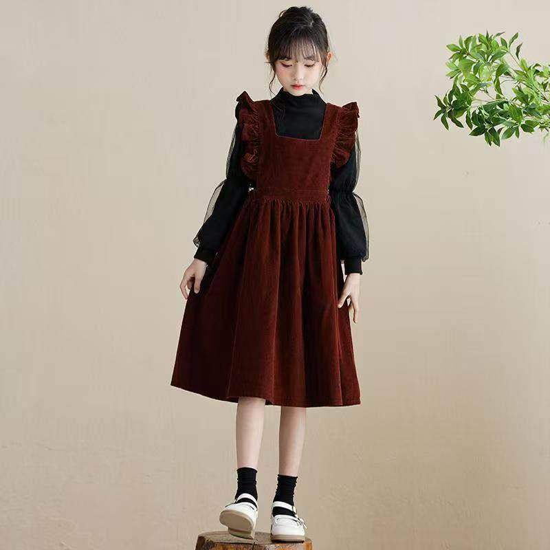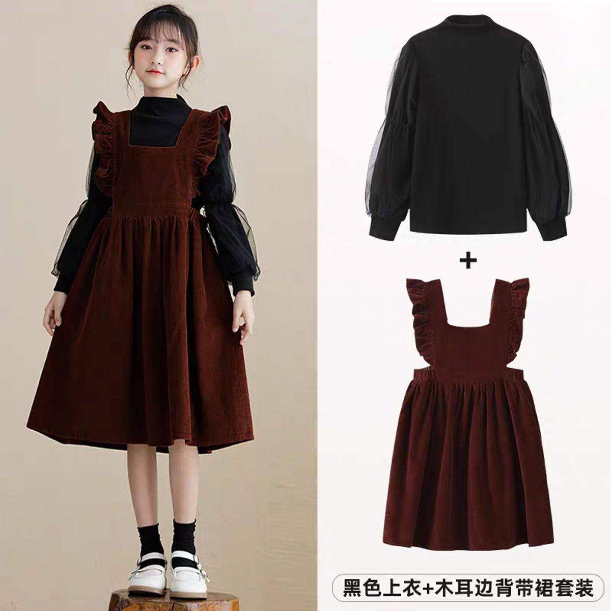 女童套装秋冬2026新款儿童时髦洋气大童红色背带裙子女孩冬装加厚
