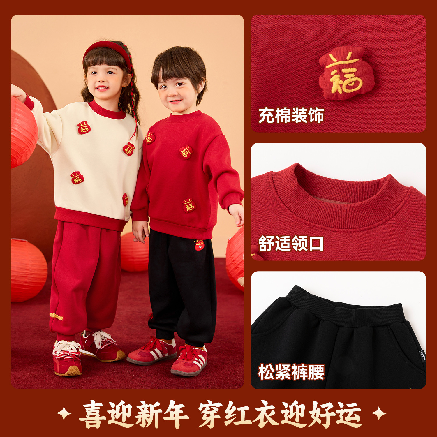 dudujia儿童周年礼服新中式男童年服舒适女童拜年服男宝套装冬款a
