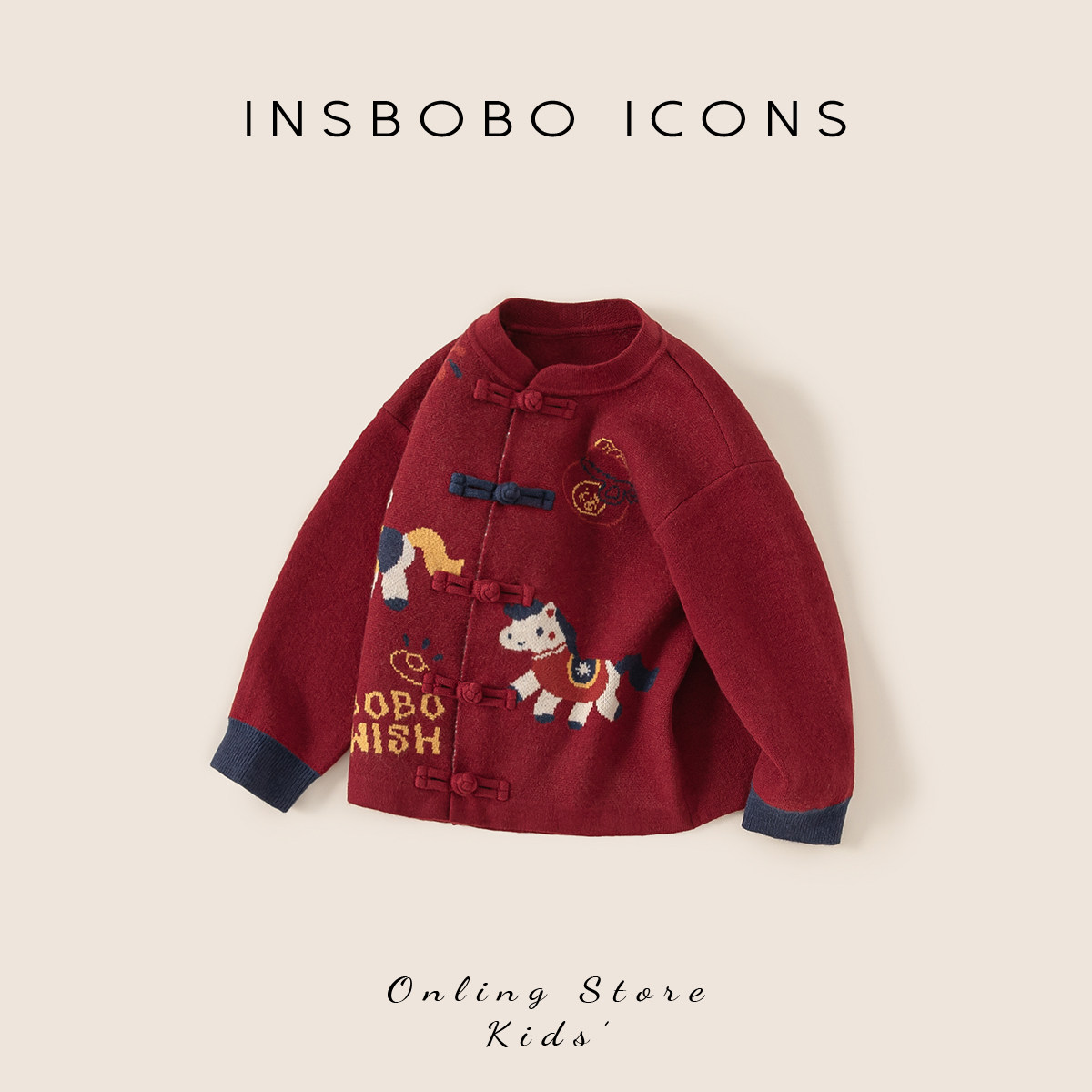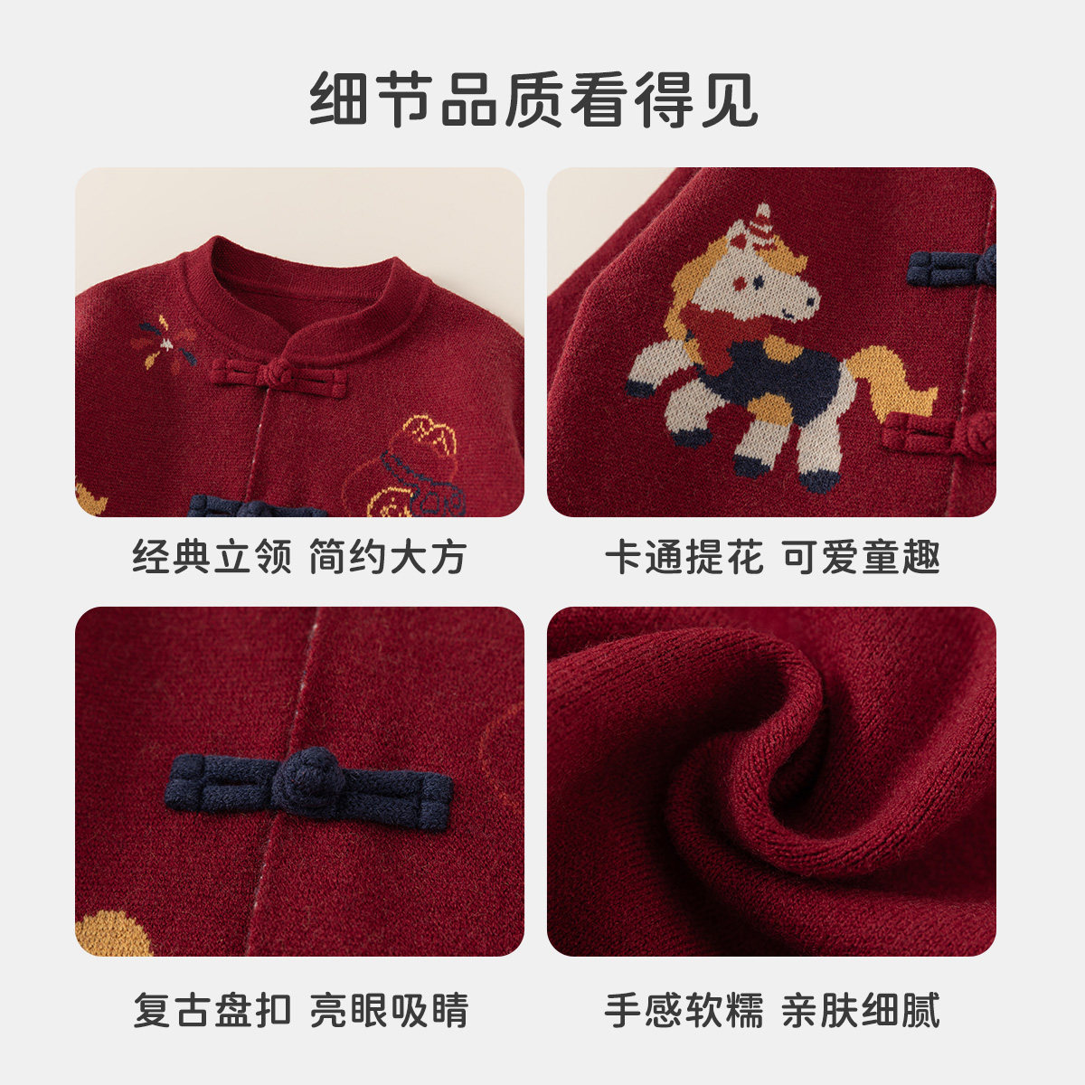 男童年服红色毛衣男宝新年衣服拜年服喜庆儿童过年服男孩拜冬年服