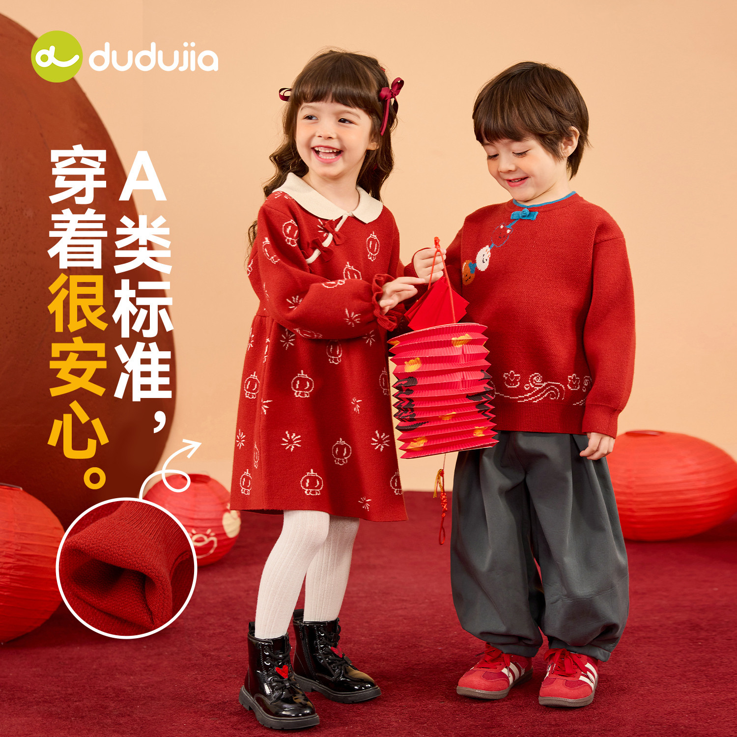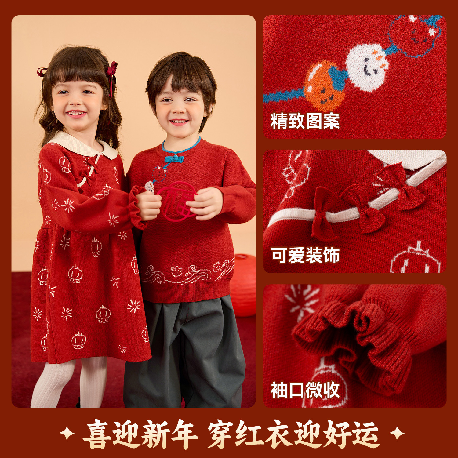 嘟嘟家儿童周年礼服国风男童年服女童拜年服洋气宝宝上衣红色冬款