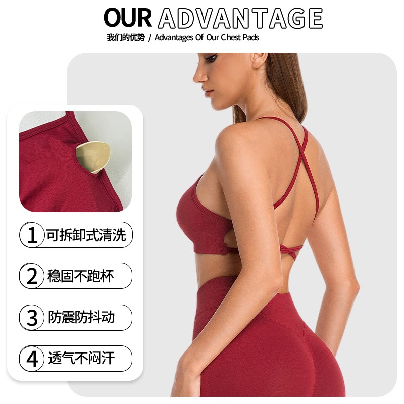 VIKIUIKI美背运动内衣女防震聚拢瑜伽健身细带文胸吊带可外穿背心