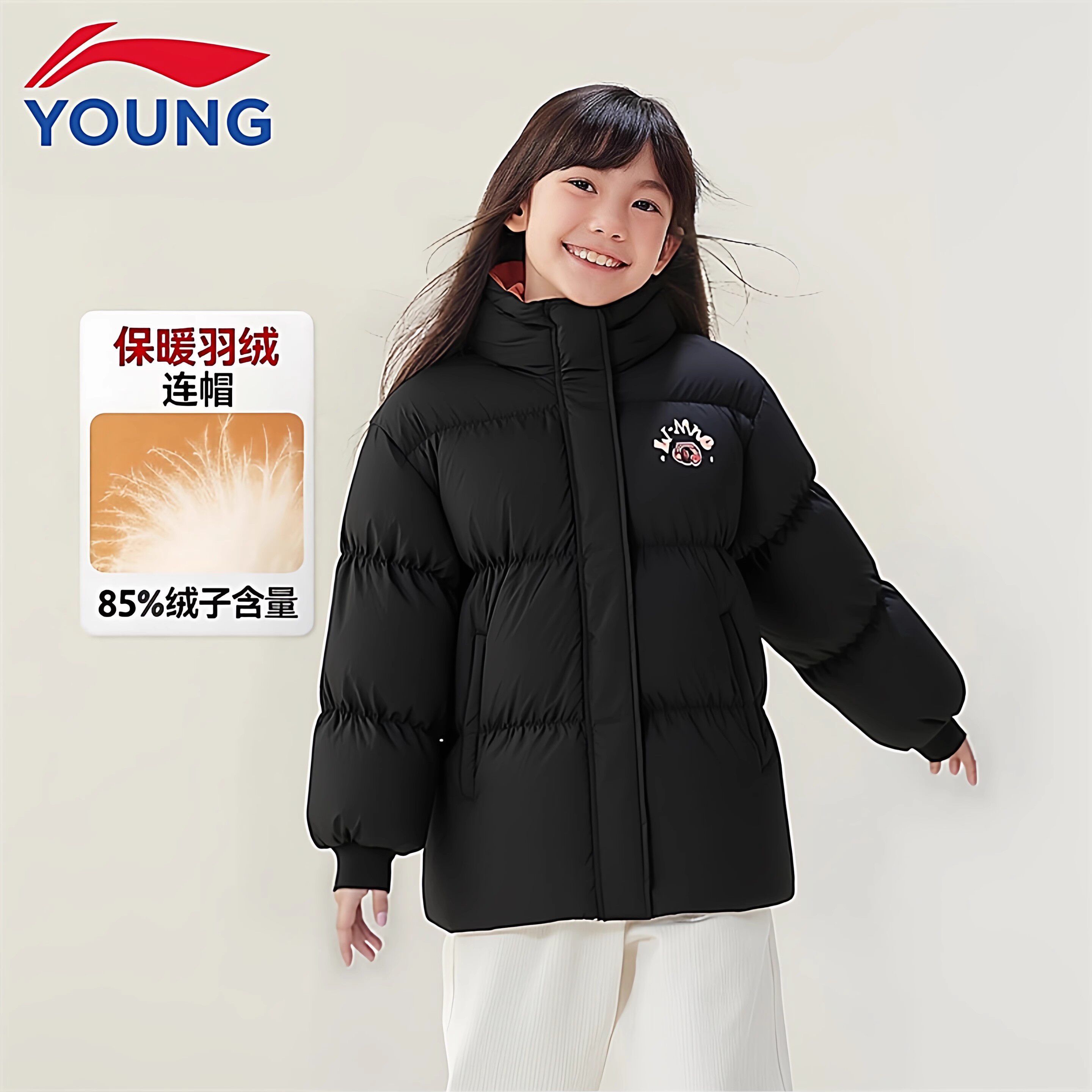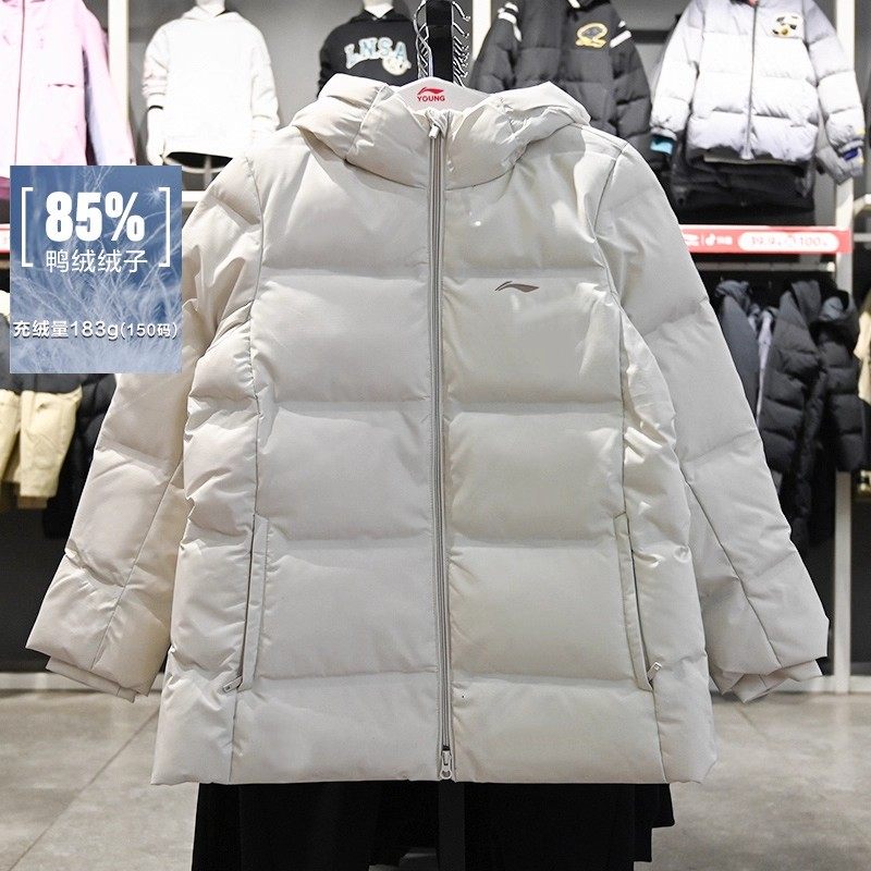 李宁2026新款正品女大童运动生活宽松鸭绒短中长款羽绒服YYMV026