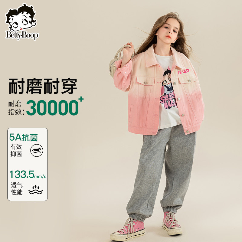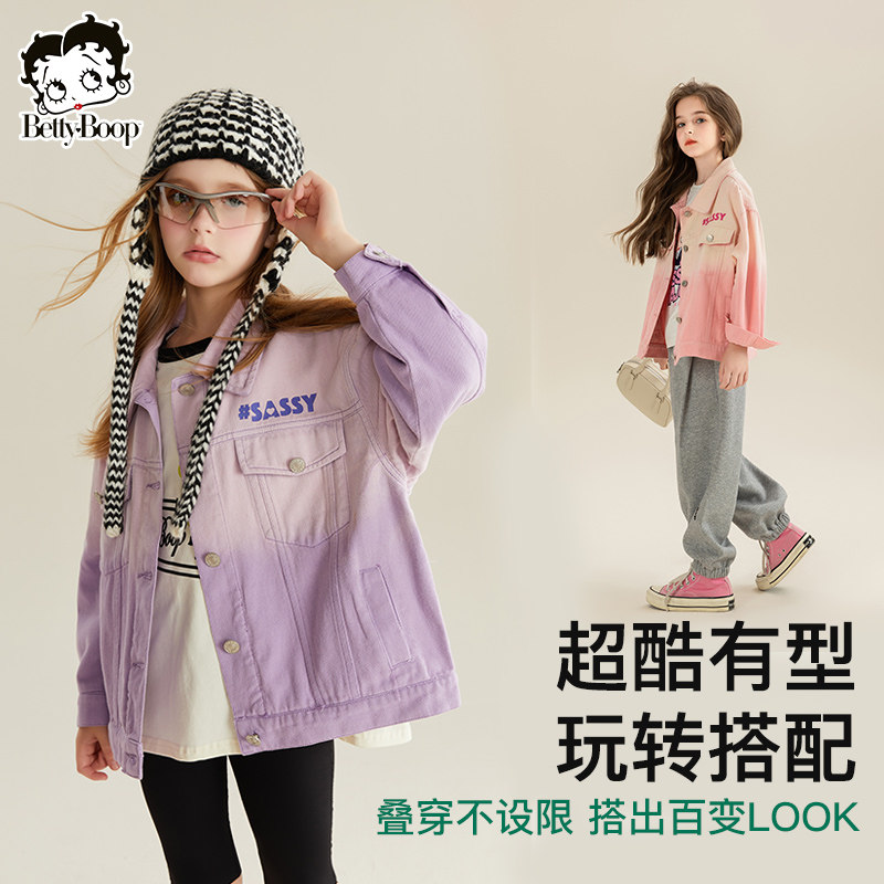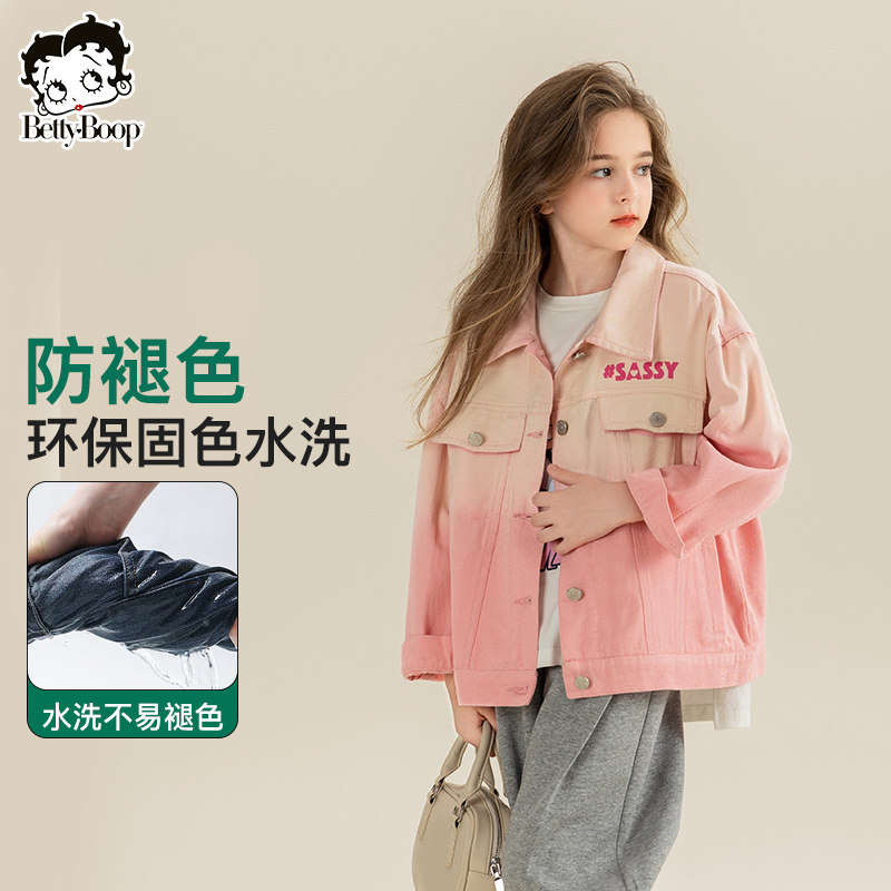 贝蒂童装女童牛仔渐变外套春秋2026新款上衣春款大童翻领牛仔衣