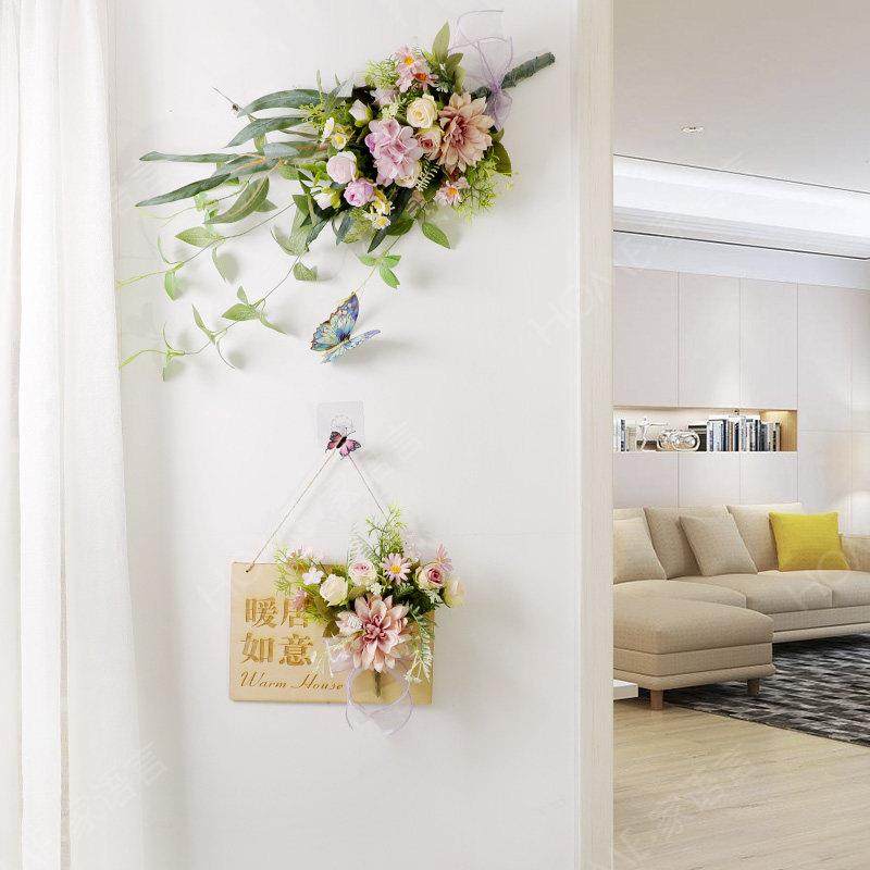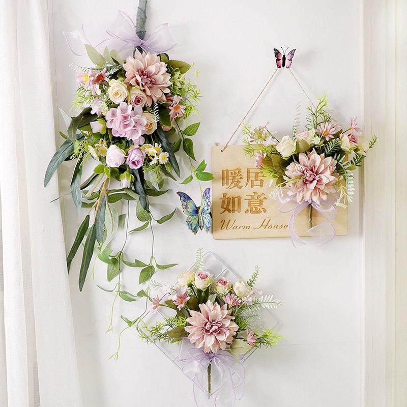 墙面装饰挂饰墙上遮丑壁挂北欧田园彷真花格栅挂件花器绿植小花篮