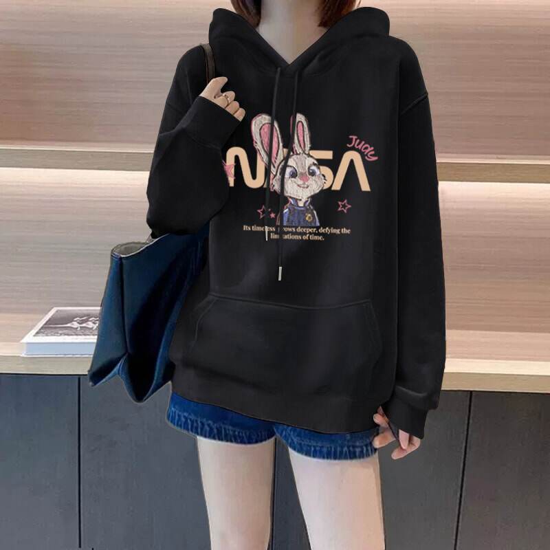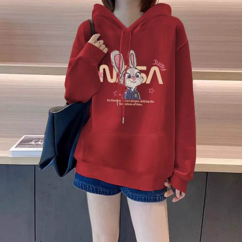 白色卡通卫衣女款春秋季2026新款爆款慵懒风套头宽松秋冬加绒外套