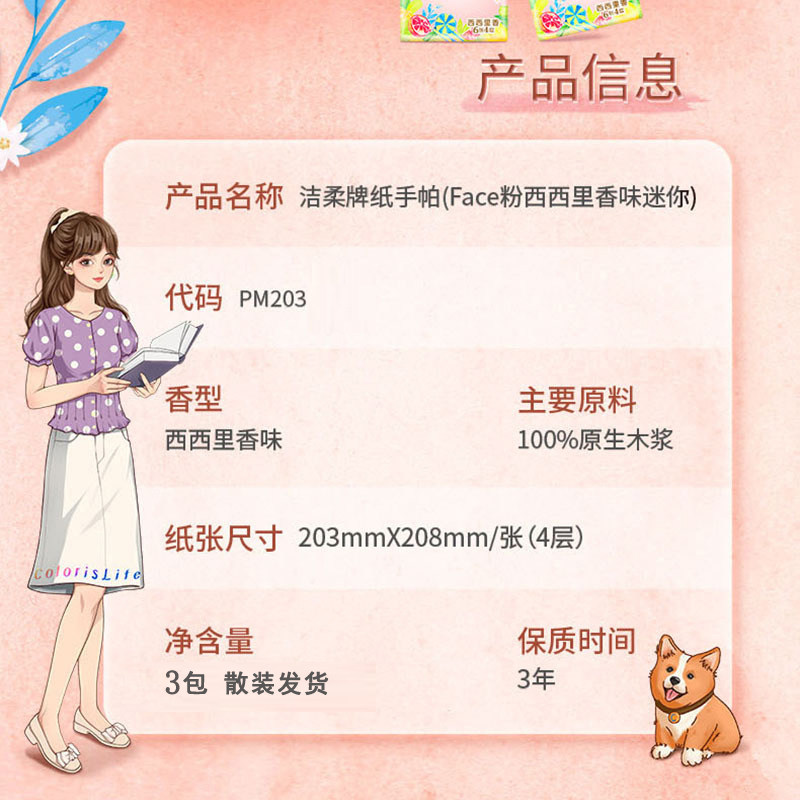 洁柔手帕纸西西里香4层6片3包家用实惠宿舍随身带手帕纸便携纸巾
