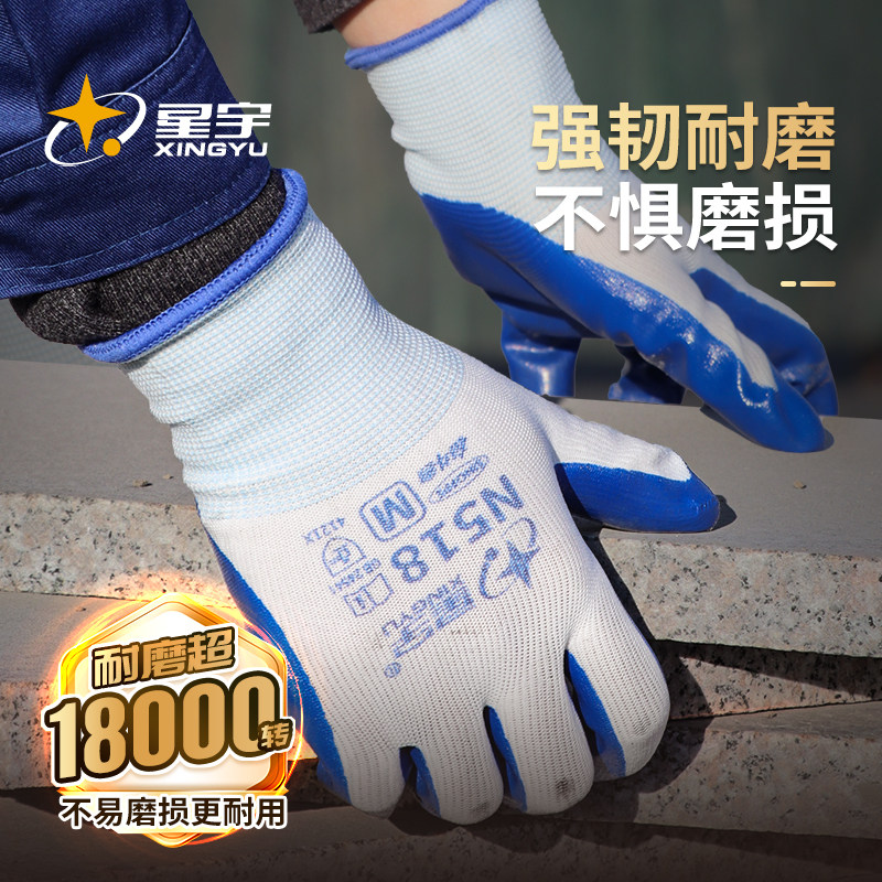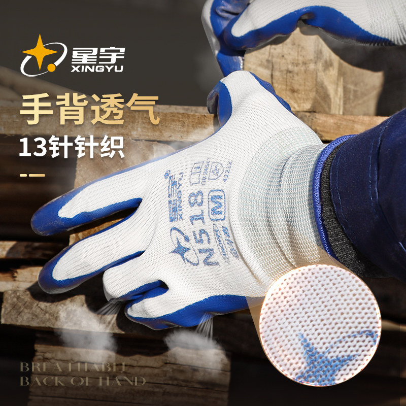 星宇正品手套劳保工作橡胶胶皮工业耐磨耐油防滑工地专用干活劳动