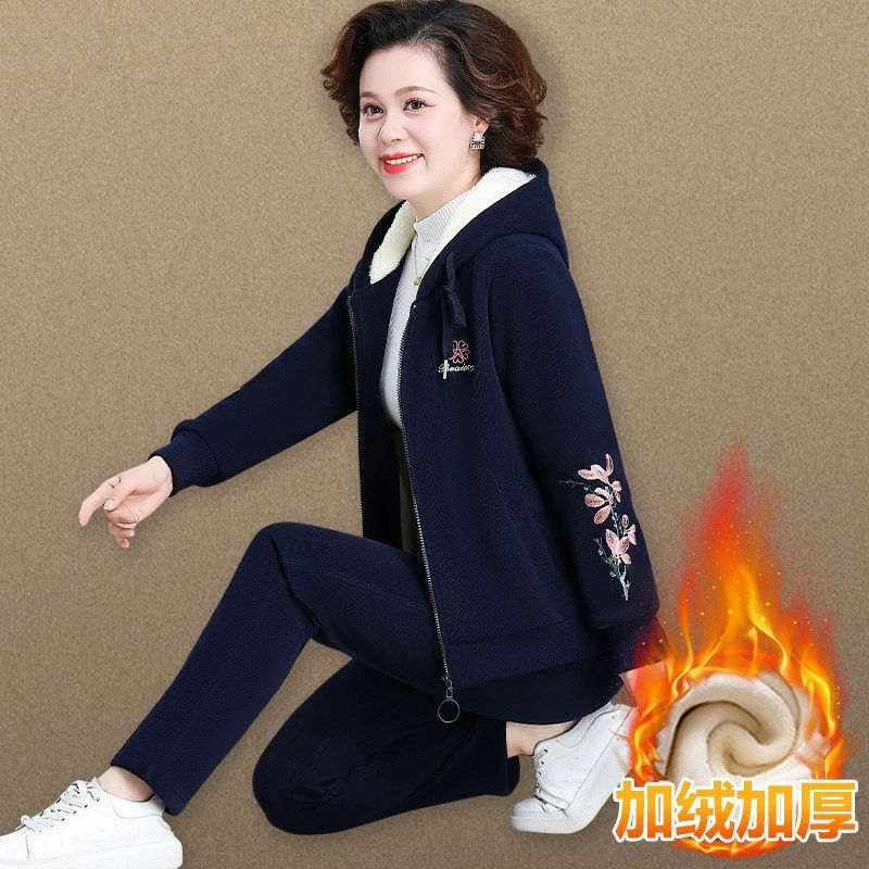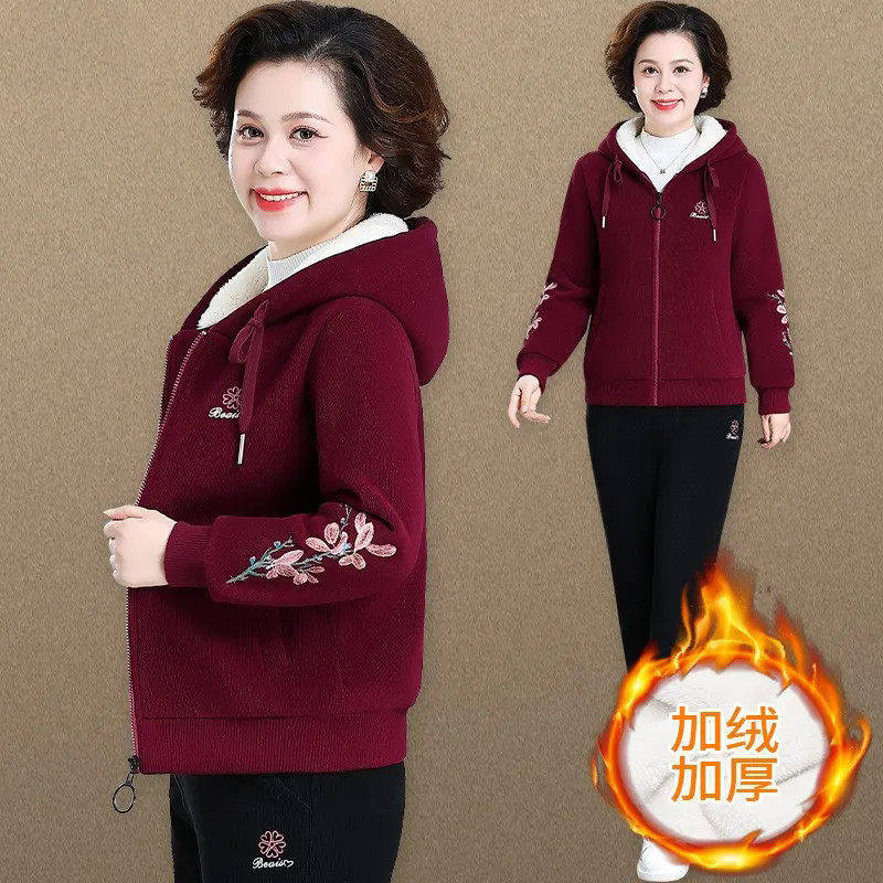 50多岁妈妈冬装外套加绒加厚运动套装2025新款中老年女装秋冬卫衣