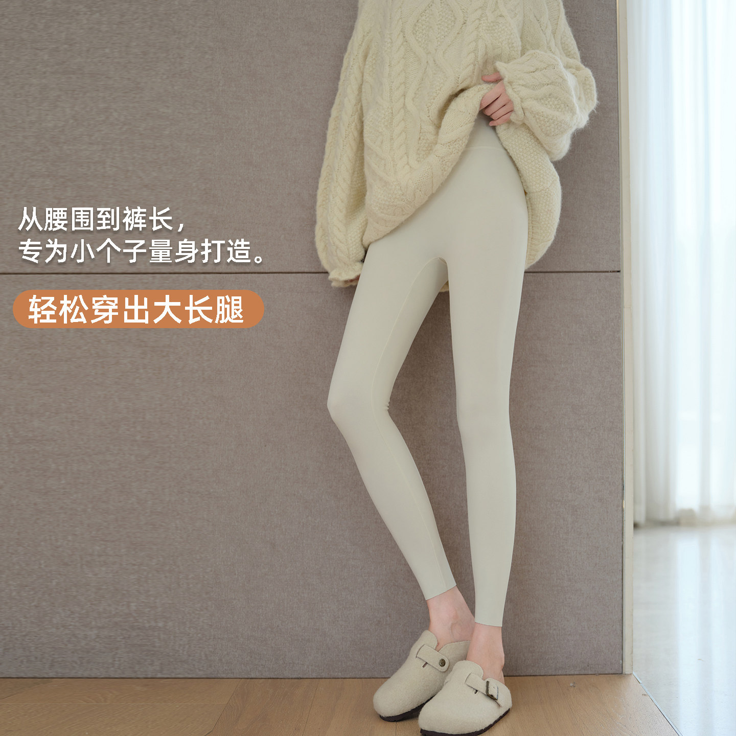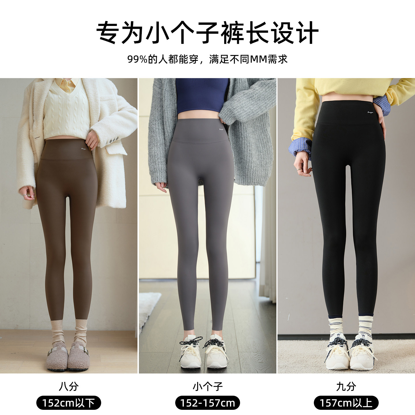 小个子鲨鱼裤女外穿2025新款秋冬八分加绒打底裤瑜伽白色薄绒显瘦