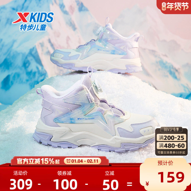 特步儿童鞋冬季新款高帮鞋皮面保暖鞋棉鞋女童冬鞋中大童运动鞋子